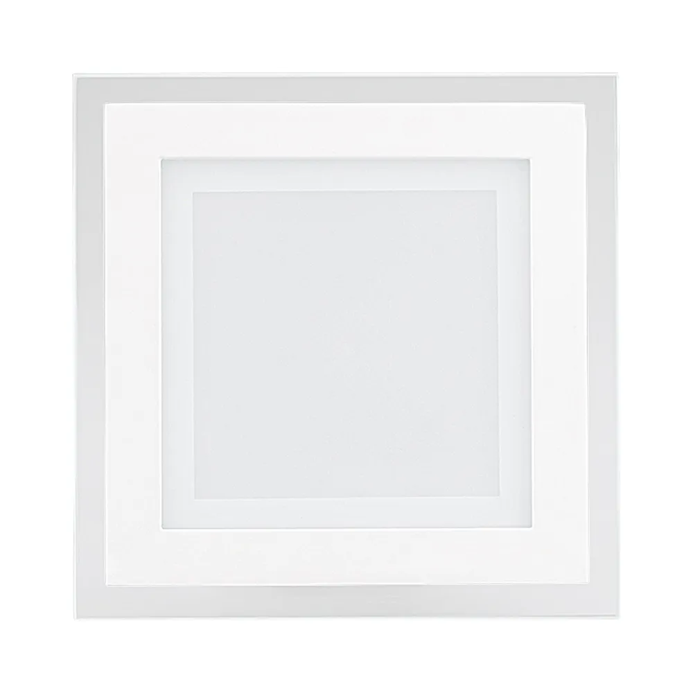 Стеклянная квадратная панель 12Вт / ТЕПЛЫЙ 2700-3000K / 950лм / 120°. Размер 160x160x45мм (в отверстие 125x125мм). Корпус белый. Питание от сети 230VAC, драйвер в к-те 300mA 25-45V. Для использования с диммерами TRIAC замените драйвер на ARJ-LK48320-DIM (приобретается отдельно). Для помещений.