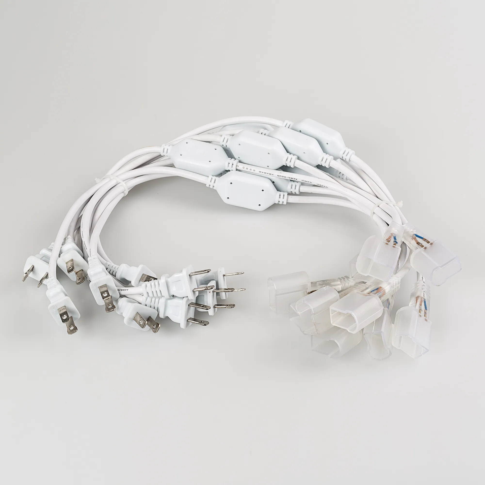 Сетевой шнур с китайской плоской вилкой и заглушкой для покдлючения неона ARL-NF-S (13x26 мм). Содержит выпрямительный диодный мост AC-DC 100-130/220-240V. Требуется силовой коннектор для соединения. Максимальная длина подключаемого неона не более 50м.