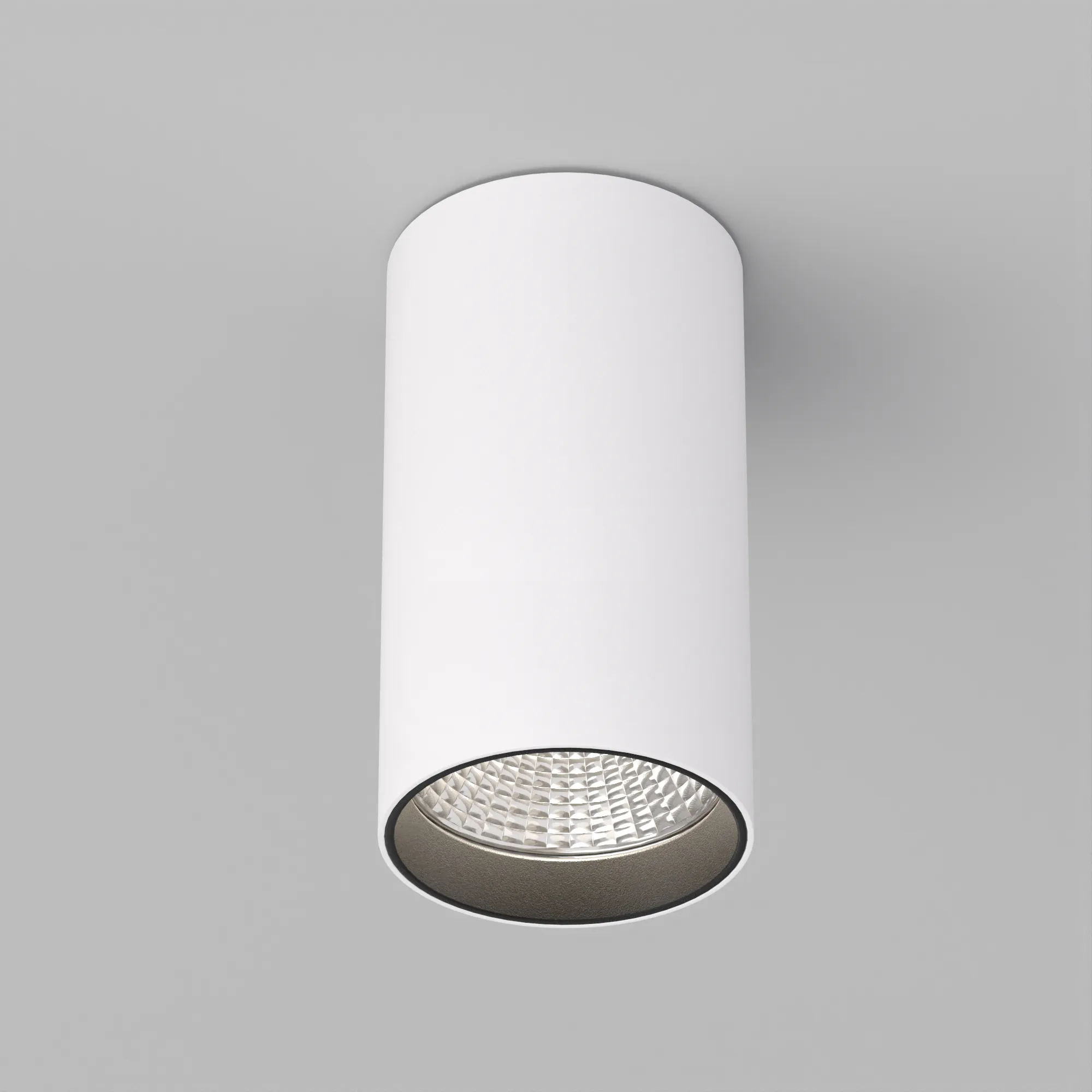 Накладной светильник 15Вт, серебристый круглый корпус, черная вставка, металл. Цвет ДНЕВНОЙ БЕЛЫЙ 4000K, св.поток 1100лм, CRI(Ra)>80, угол 40°. Размер Ø85x155мм. Встроенный драйвер PRI:220-240VAC, SEC:DC 500mA 23-36V 15Вт.