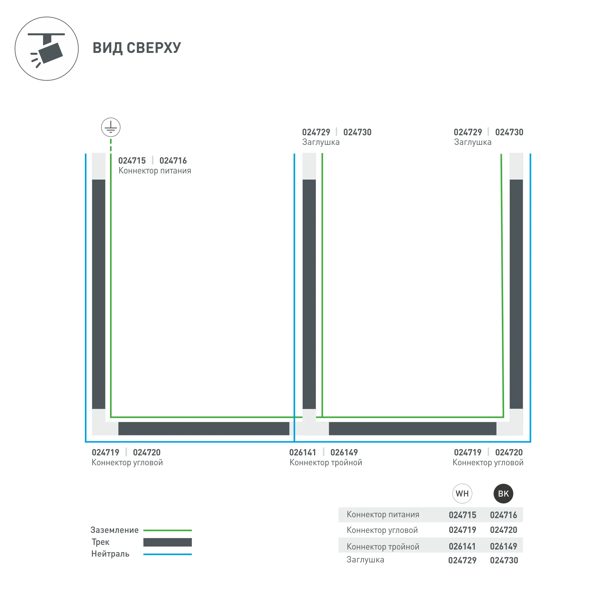 Угловой коннектор 90 градусов, питание по внутренней стороне. Цвет белый. 99х99х33 мм с контактами, 66х66х33 мм без контактов. При использовании с треками и аксессуарами другой серии возможно отличие по цвету.