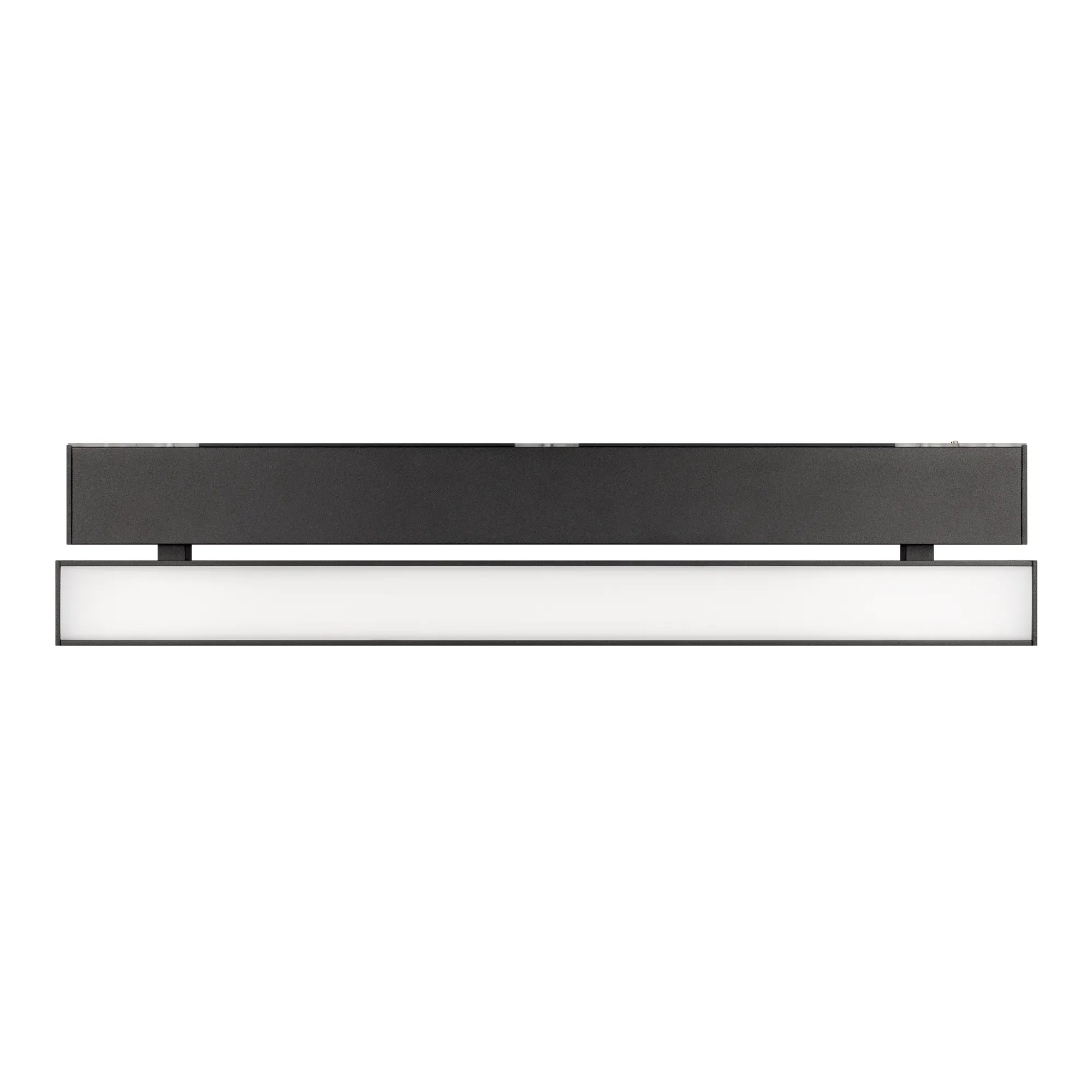 Светильник поворотный для магнитных треков шириной 45мм, 12Вт. Цвет свечения ДНЕВНОЙ 4000K, световой поток 1300лм, угол 100°, CRI>90. Корпус прямоугольный, металл, цвет черный, IP20. Размеры LxWxH 404x35x92.5мм. Входное напряжение DC24V, мощность 12Вт. Драйвер DС24V/AC230V поставляется отдельно. Диммируется только с 026407(1), 027633.