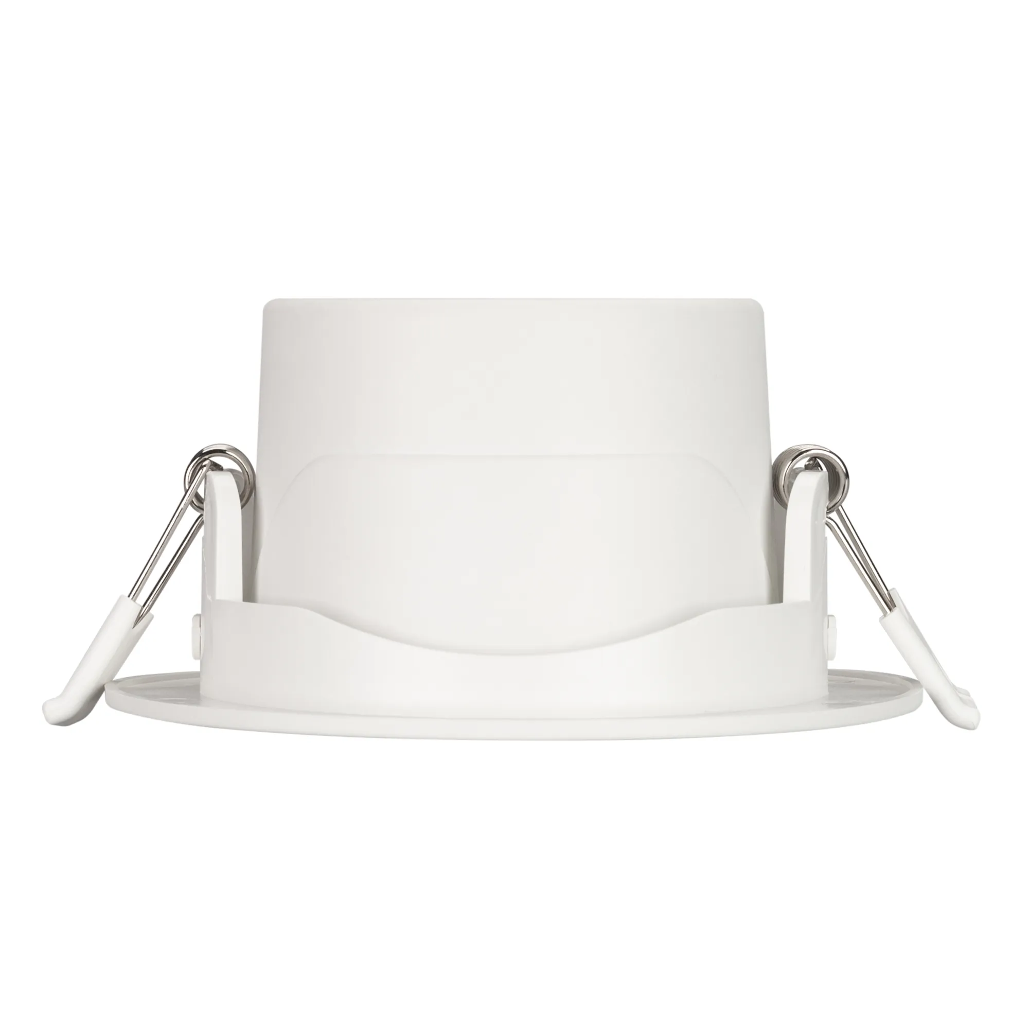 Встраиваемый поворотный светильник "даунлайт". Мощность 10 Вт, св. поток 900 лм, 90 лм/Вт, дневной 4000 K, CRI>80, UGR<19, угол 36°, напряжение питания 230 В. Белый круглый корпус из теплопроводящего полиамида, степень защиты IP20, угол поворота оси 30°. Размер: диаметр 105 мм, высота 51.5 мм. Монтаж встраиваемый, установочное отверстие диаметр 83-95 мм. Пульсация <2%.