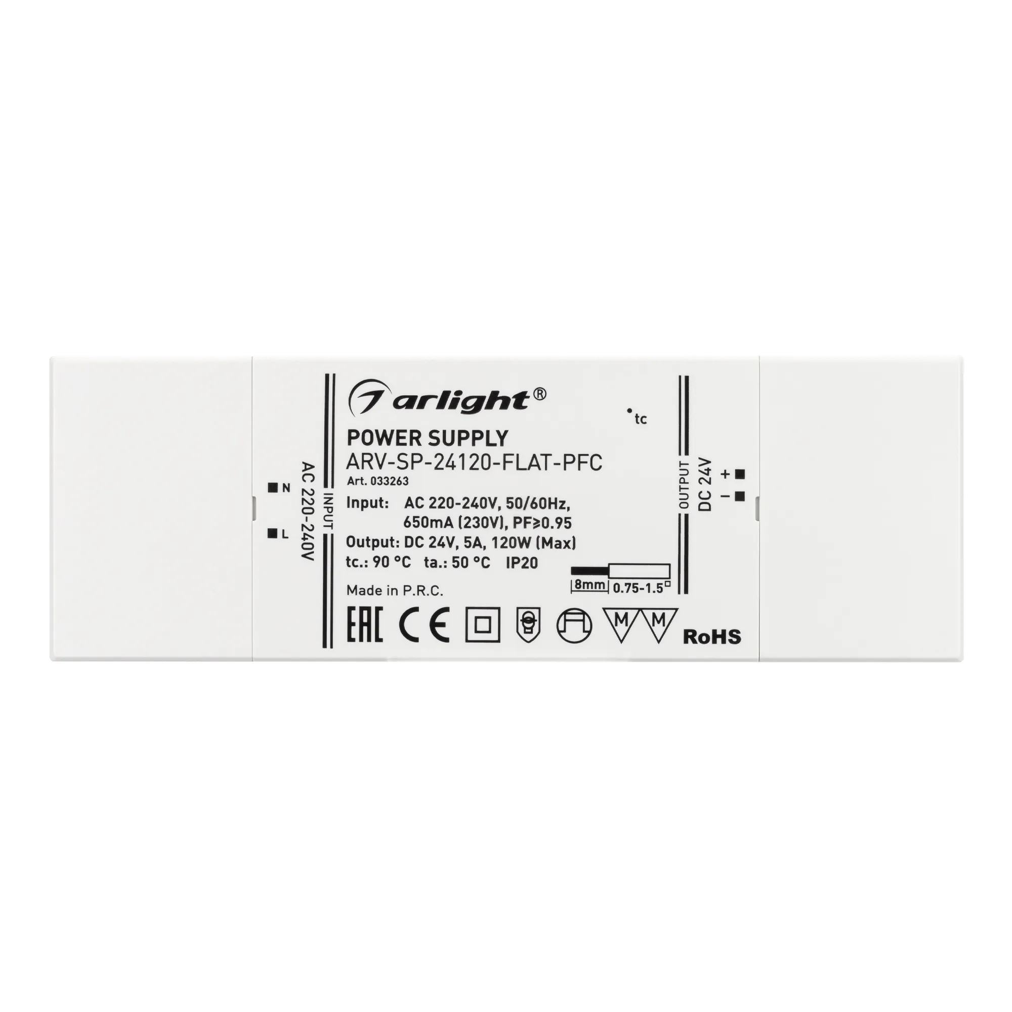 Блок питания ARV-SP-24120-FLAT-PFC (24V, 5A, 120W) (Arlight, IP20 Пластик, 5 лет)