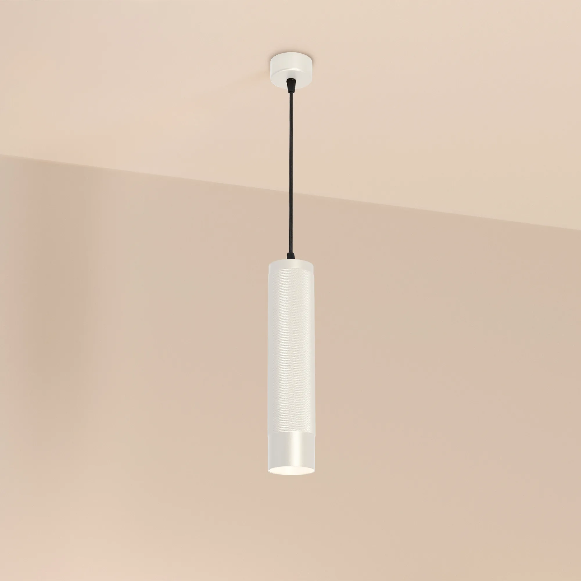 Подвесной светильник. Мощность 13 Вт, св. поток 732 лм, 57 лм/Вт, теплый 3000 K, CRI>90, угол 50°, напряжение питания 230 В. Белый круглый корпус из алюминия, рефлектор PC, степень защиты IP20. Размер: диаметр 70 мм, высота 300 мм, длина подвеса 1500 мм, размер чаши: диаметр 65 мм, высота 30 мм. Монтаж подвесной. Драйвер 24-42 В, 300 мА, пульсация <1%.