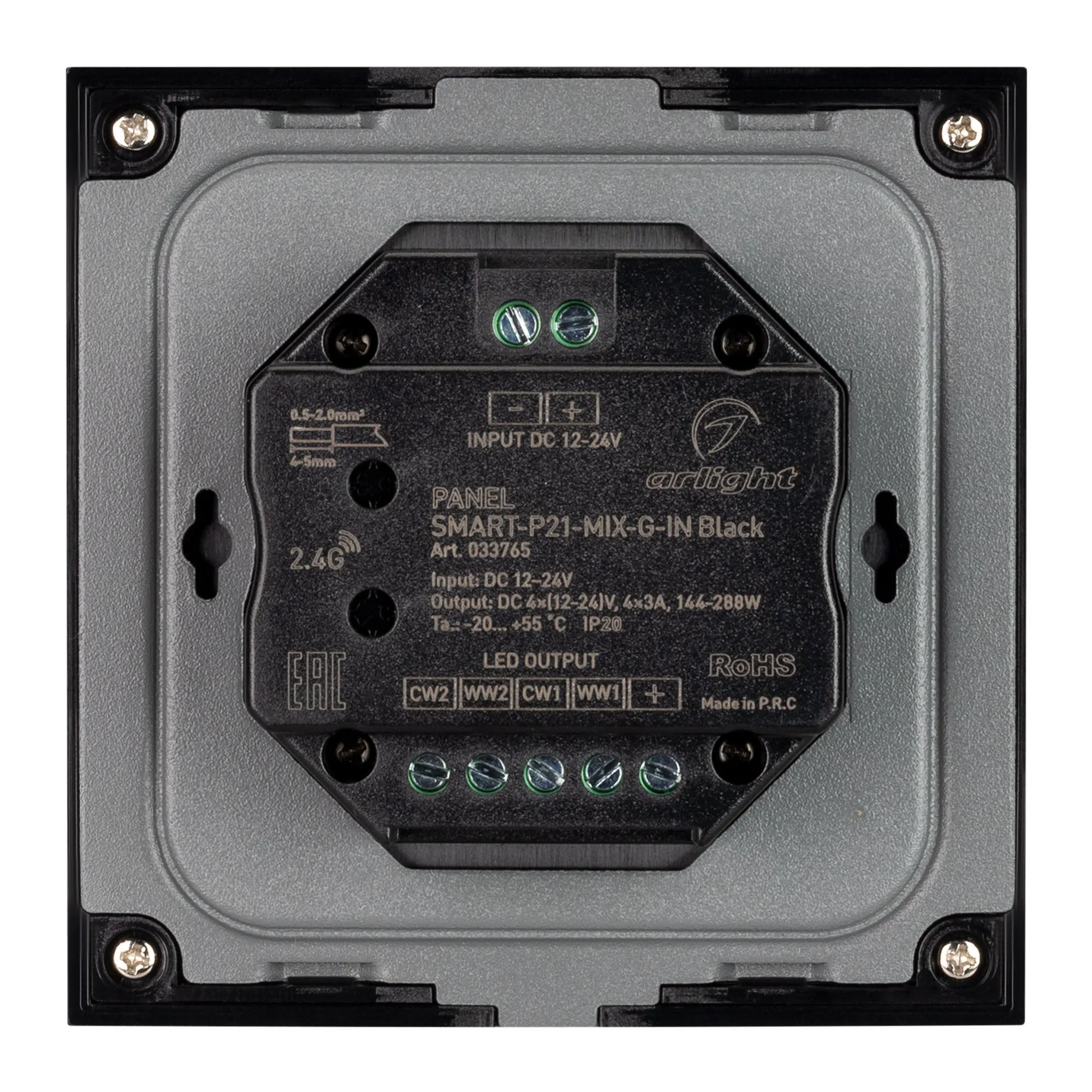 Панель SMART-P21-MIX-G-IN Black (12-24V, 4x3A, Sens, 2.4G) (Arlight, IP20 Пластик, 5 лет)
