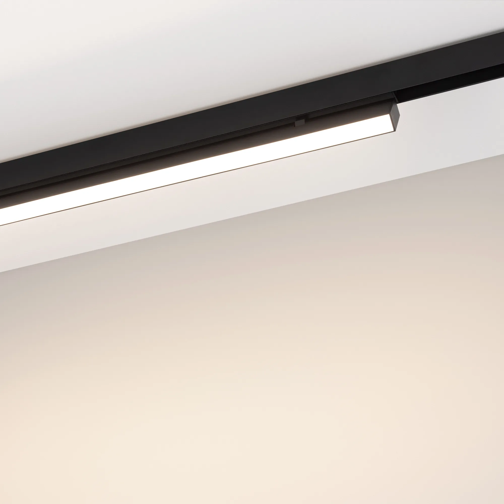 Светильник поворотный для магнитных треков шириной 25мм, 18Вт. Цвет свечения ДНЕВНОЙ 4000K, световой поток 1200 лм, угол 100°, CRI>90. Корпус прямоугольный, металл, цвет черный, IP20. Размеры LxWxH 604x20x46мм. Входное напряжение DC24V, мощность 18Вт. Драйвер DС24V/AC230V поставляется отдельно. Диммируется только с 026407, 027633.