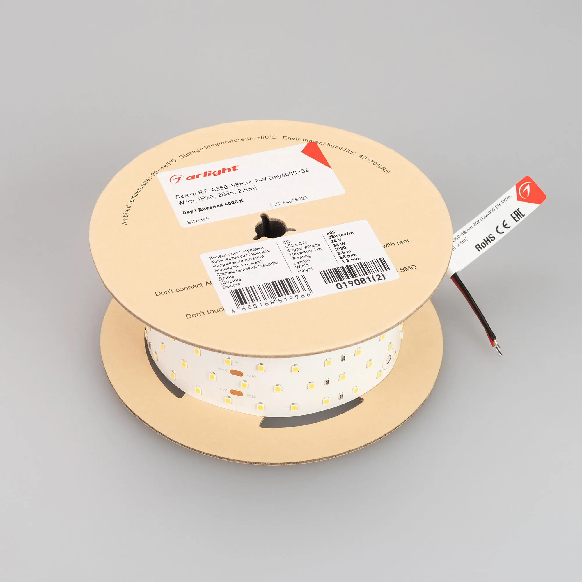 Лента светодиодная RT-A350-58mm 24V Day4000 (36 W/m, IP20, 2835, 2.5m) (Arlight, Открытый)