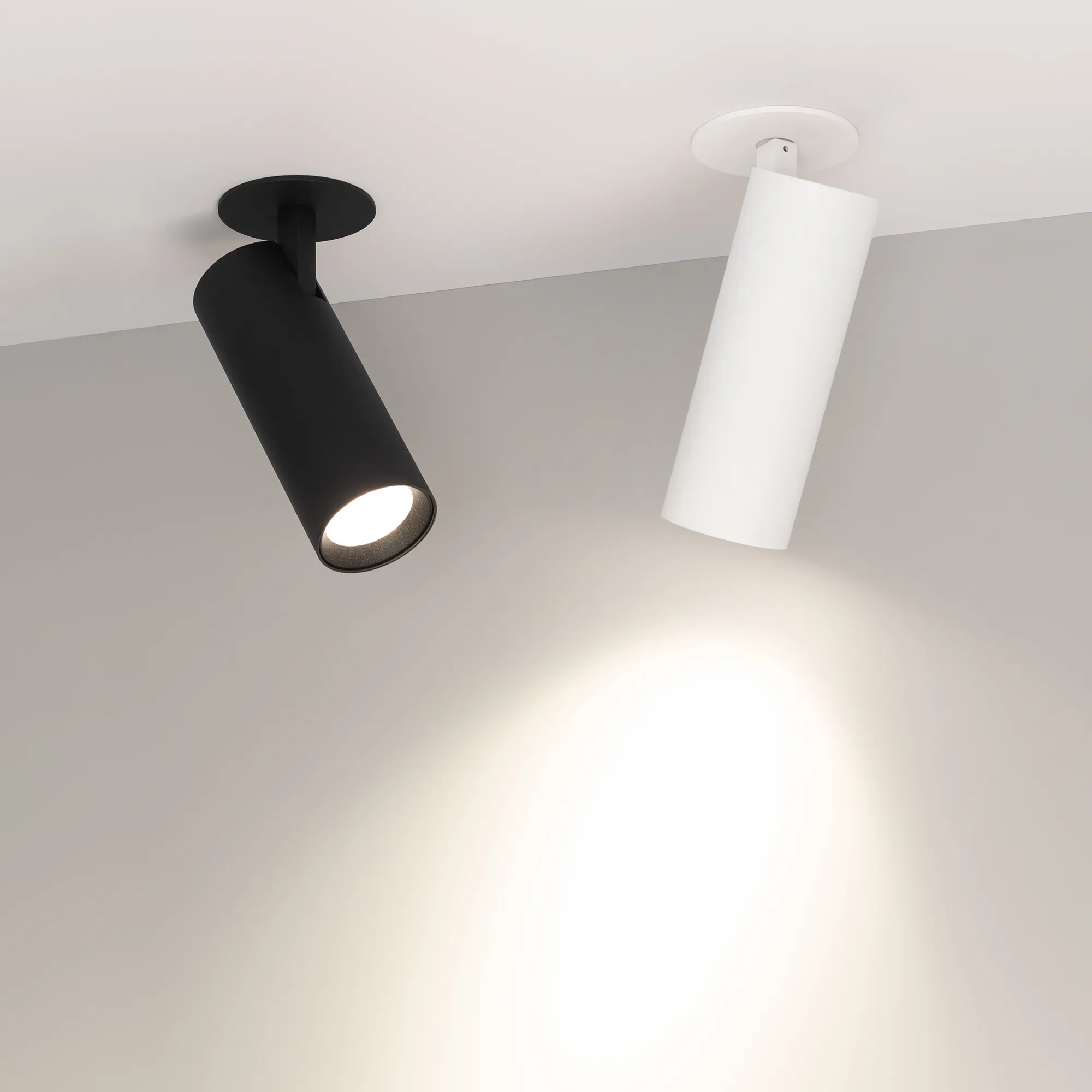 Встраиваемый поворотный светильник для потолка. Мощность 16 Вт, св. поток 1280 лм, 80 лм/Вт, дневной 4000 K, CRI>90, угол 25°, напряжение питания 230 В. Белый корпус из алюминия, линза PC, степень защиты IP20. Размер: диаметр 55 мм, длина 150 мм, высота 80 мм. Угол поворота 350°, угол наклона 90°. Монтаж встраиваемый, установочное отверстие диаметр 60 мм, глубина 30 мм. Драйвер 26-40 В, 400 мА, пульсация <5%.