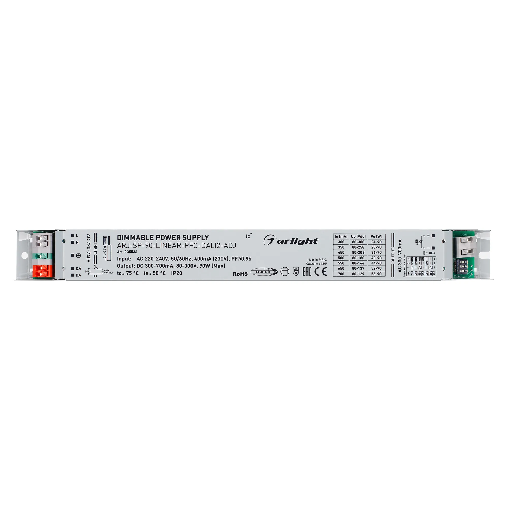 Блок питания ARJ-SP-90-LINEAR-PFC-DALI2-ADJ (90W, 80-300V, 0.3-0.7A) (Arlight, IP20 Металл, 5 лет)