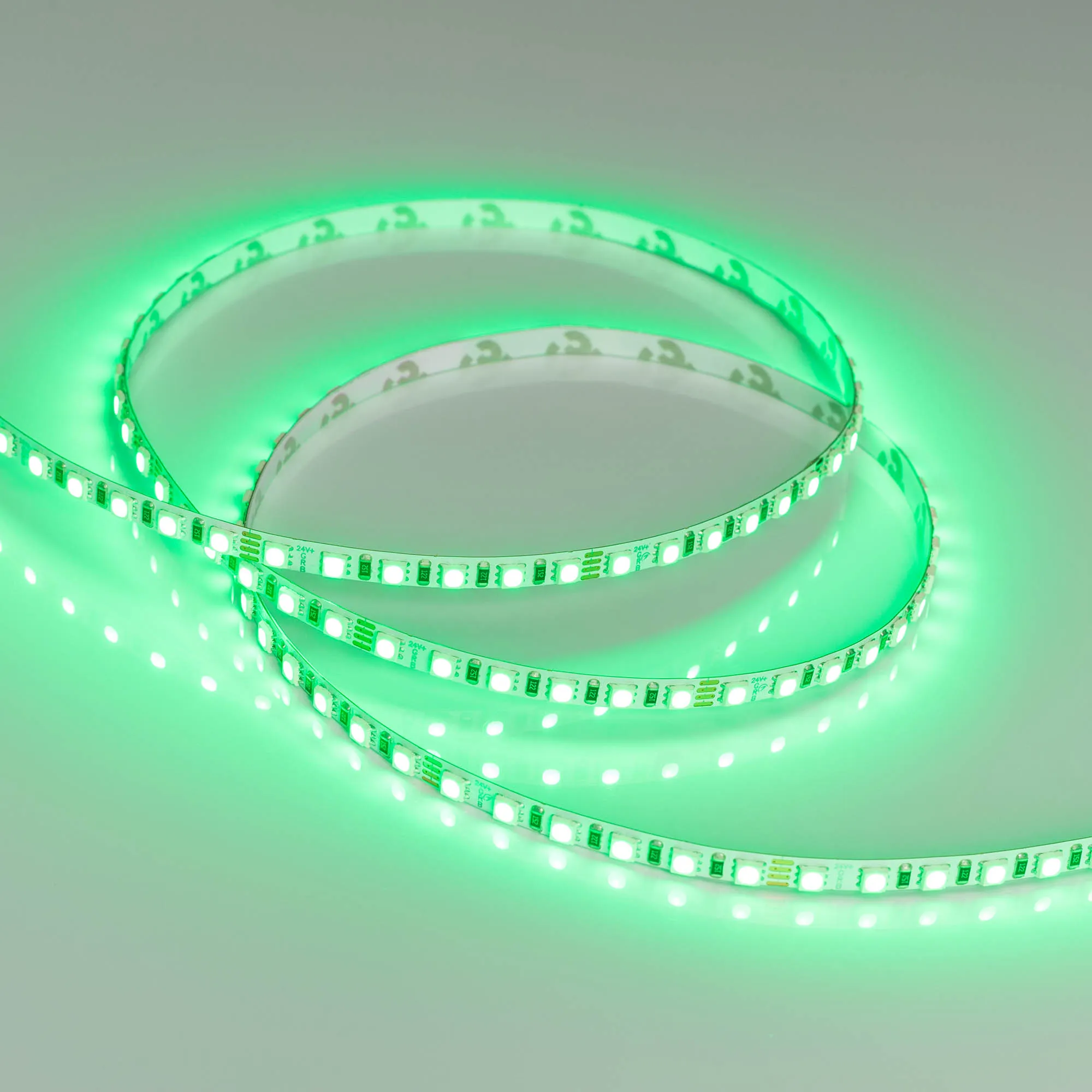 Мультицветная лента серии RT G120. Светодиоды SMD 3838, 120 шт/м, белая плата шириной 5 мм, скотч 3M. Цвет RGB. Питание 24 В, мощность 7.5 Вт/м (37.5 Вт на 5 м), угол 120°. Размеры 5000x5x1.9 мм. Мин. отрезок 50 мм, 6 светодиодов. Цена за 1 м. Обязательна установка на профиль.