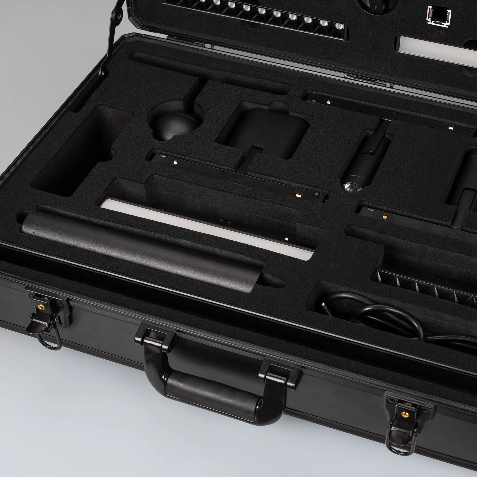 В комплекте демо-кейс, все виды треков, светильники, аксессуары.