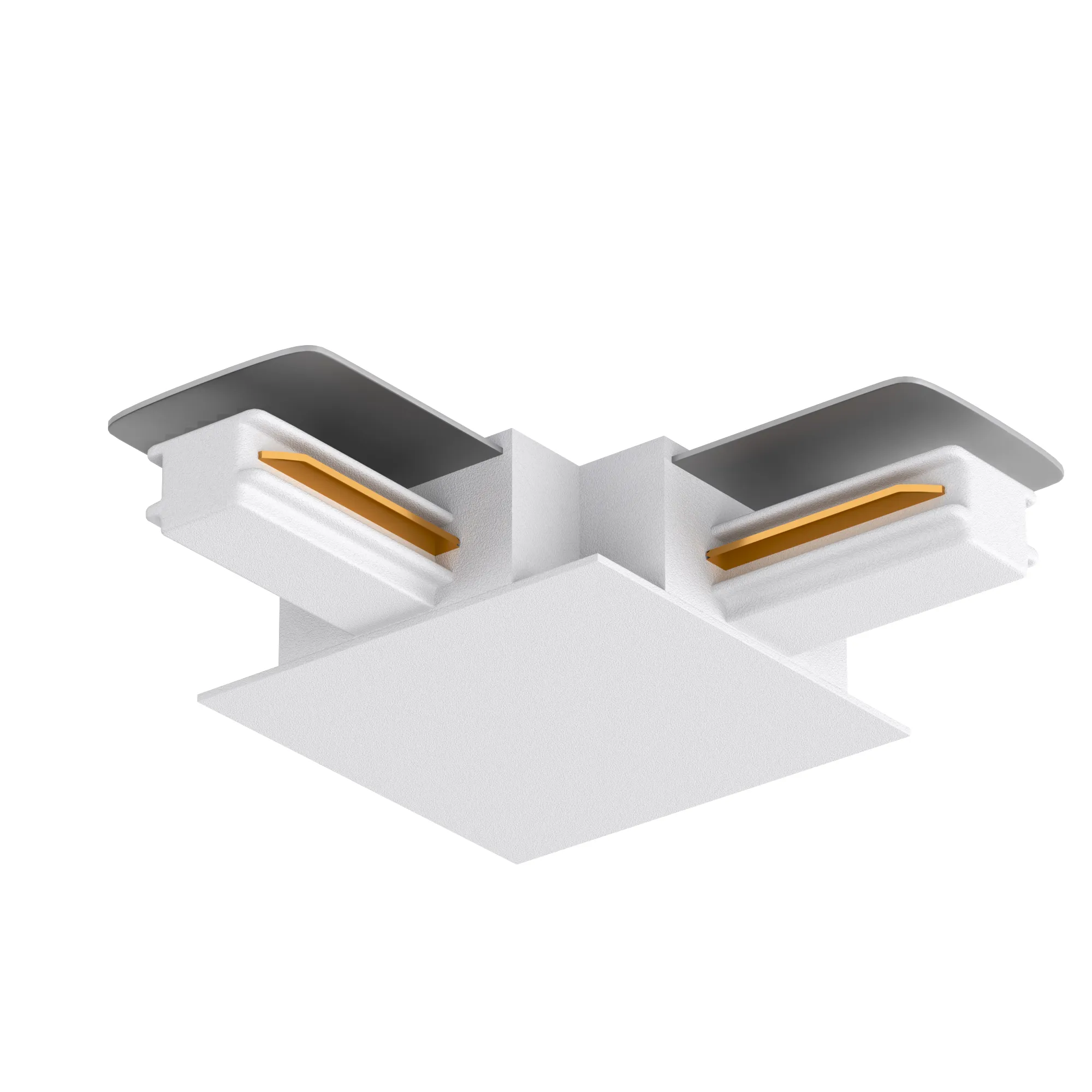 Угловой белый глянцевый коннектор для соединения 2TRA (на 2 провода) встраиваемых треков LGD под углом 90 градусов. Размеры 95х95х20 мм (60 мм - сторона квадрата). Без возможности подвода питания. При использовании с треками и аксессуарами другой серии возможно отличие по цвету.