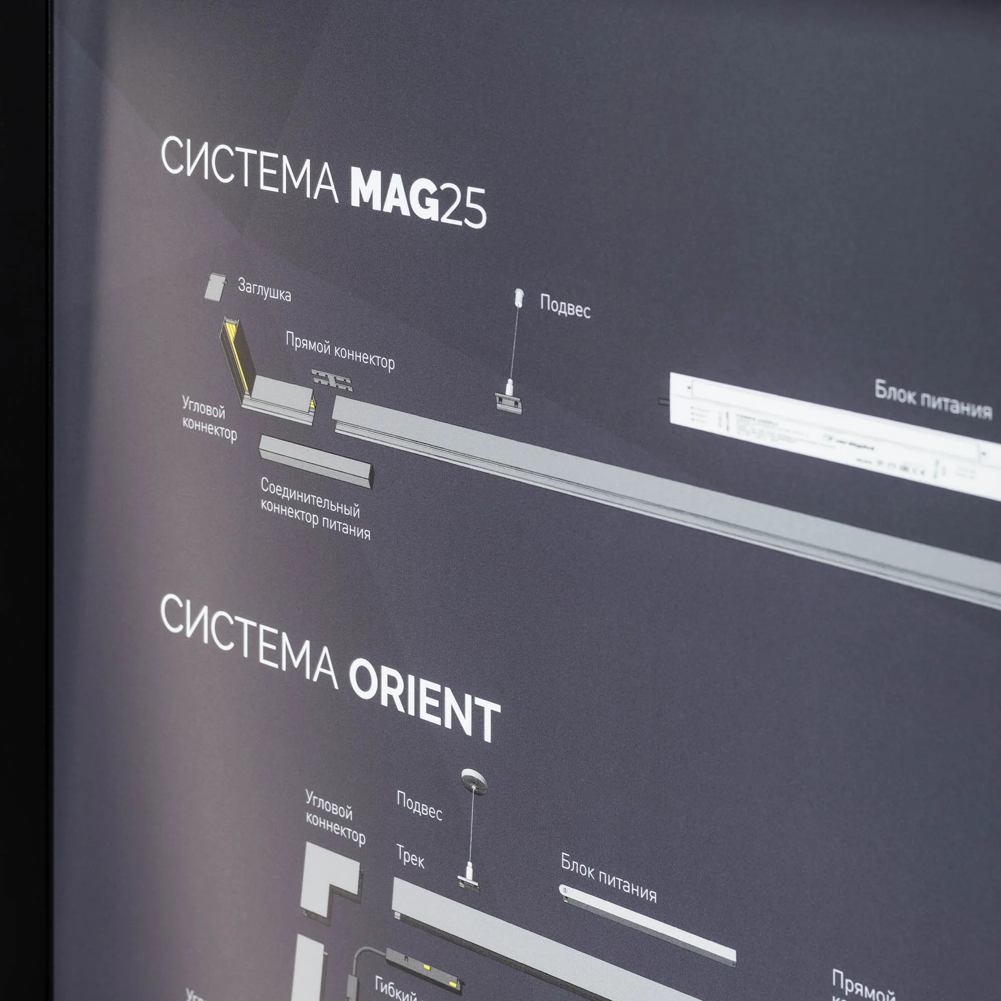 Отображена полная линейка треков для данных систем: подвесные, накладные и встраиваемые модели.