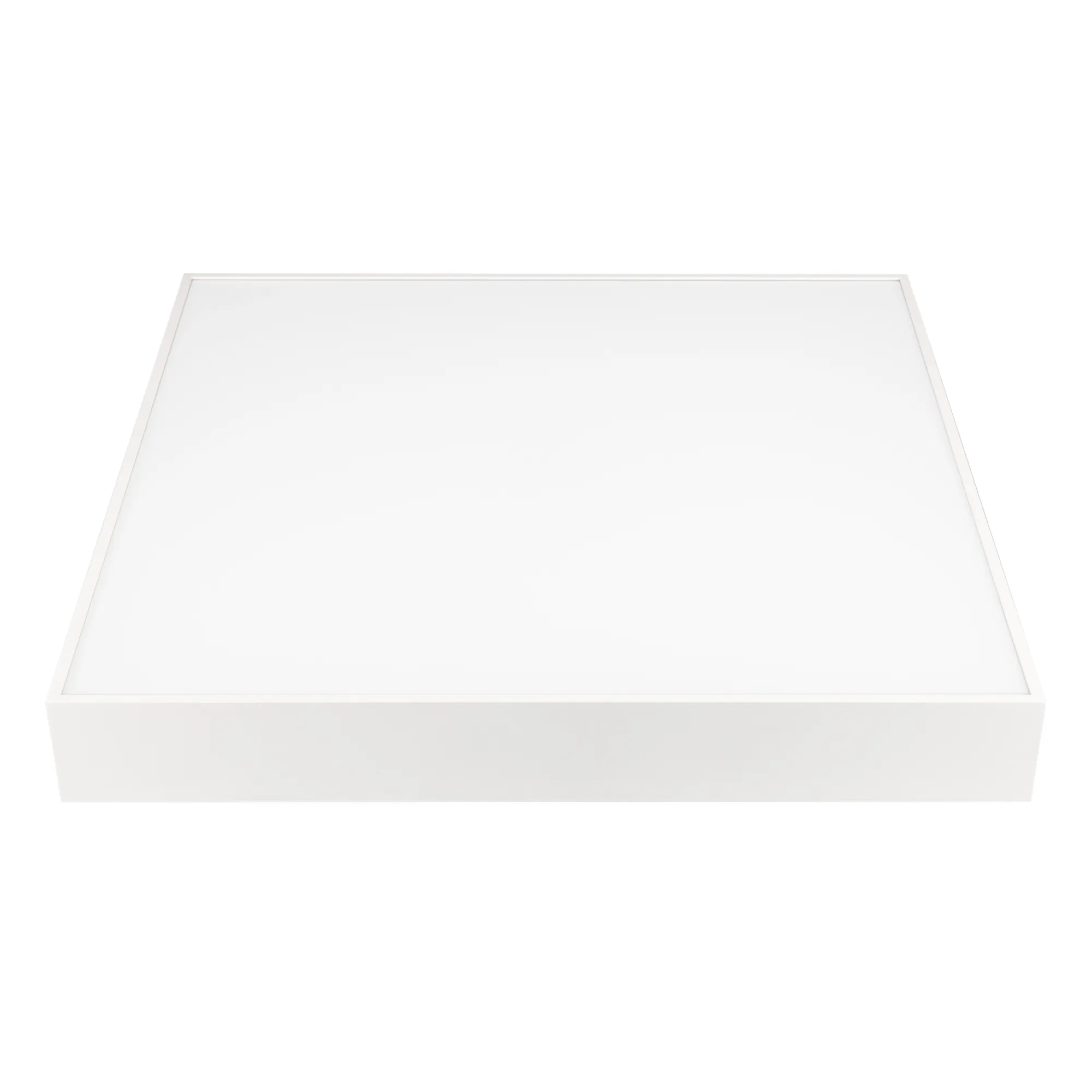 Светодиодный светильник с блоком аварийного питания. Мощность полная 54 Вт, мощность в режиме заряда и контроля АКБ 3.5 Вт, св. поток 4100-4400 лм, 80-90 лм/Вт, световой поток в аварийном режиме 424 лм, теплый 3000 K, CRI>90, угол 120°, напряжение питания 230 В. Белый квадратный корпус из алюминия, экран PC, степень защиты IP40. Размер: длина 500 мм, ширина 500 мм, высота 64 мм. Монтаж накладной. Драйвер 27-42 В, 1200 мА, пульсация <5%. Тип батареи: Ni-Cd, напряжение батареи 6 В, емкость батареи 3000 мАч, время работы в автономном режиме: до 3 ч.