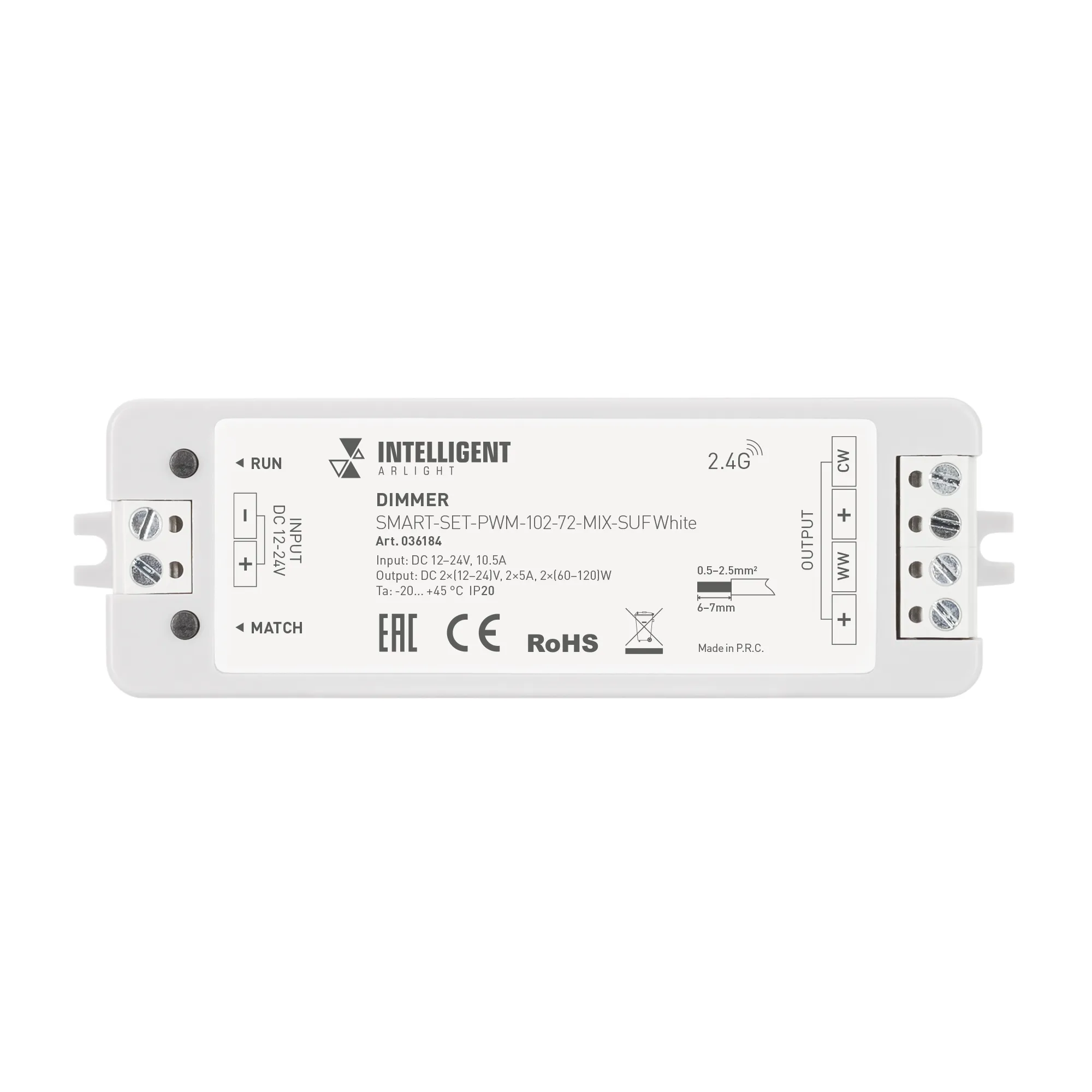 INTELLIGENT ARLIGHT Диммер SMART-SET-PWM-102-72-MIX-SUF White (12-24V, 2x5A, ПДУ RING 10кн, 2.4G) (IARL, IP20 Пластик, 5 лет)