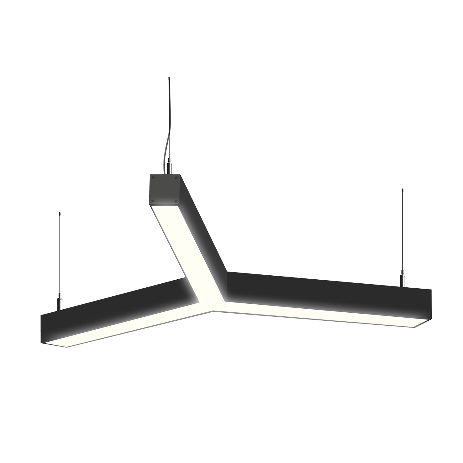 Cветодиодный фигурный светильник MS-TRINITY Y-образный размер профиля 50x50мм длиной 3х500мм мощностью 30W. Светильник собирается из алюминиевого основния с матовым рассеивателем, который дает равномерную засветку по всей площади.