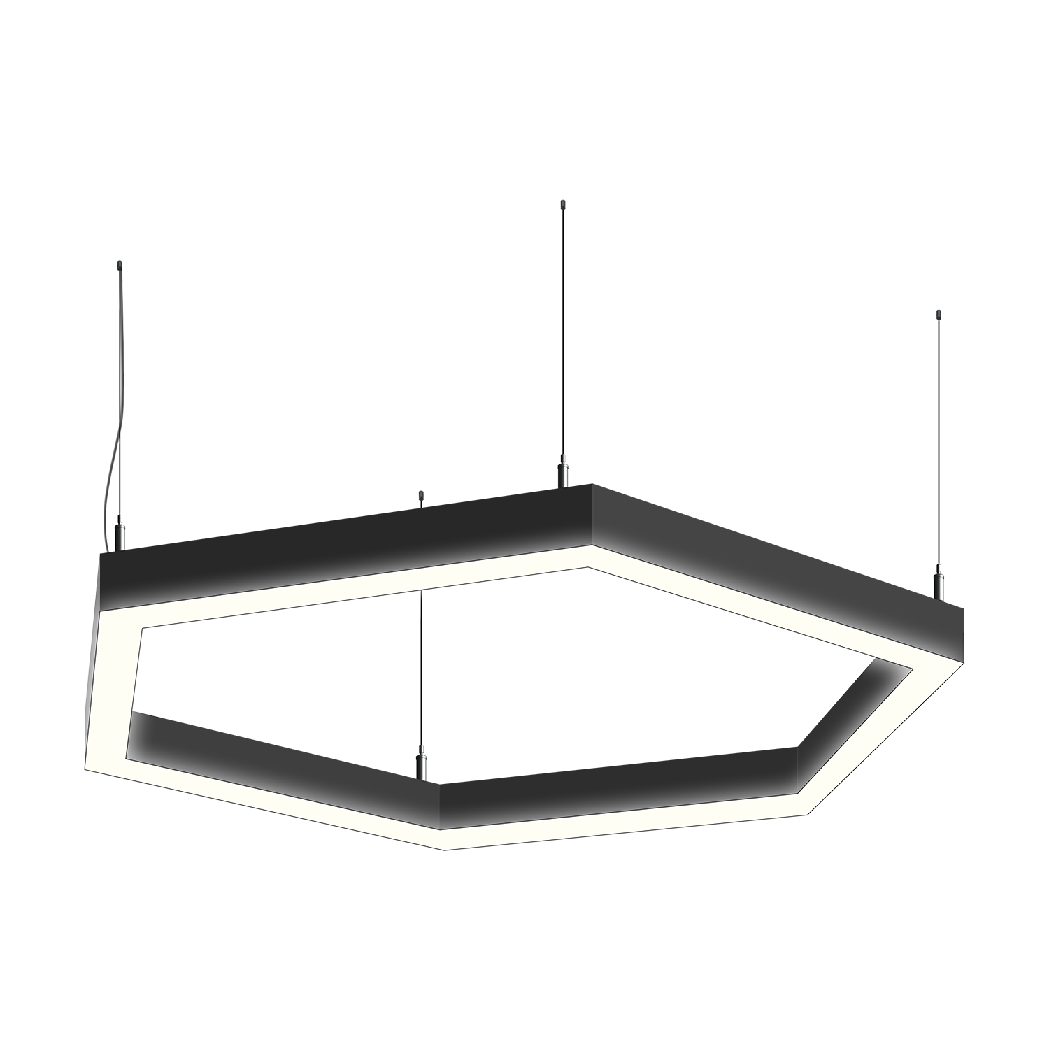 Cветодиодный фигурный светильник MS-HEX-O Шестиугольник размер профиля 50x50мм длиной 6х250мм мощностью 30W. Светильник собирается из алюминиевого основния с матовым рассеивателем, который дает равномерную засветку по всей площади.