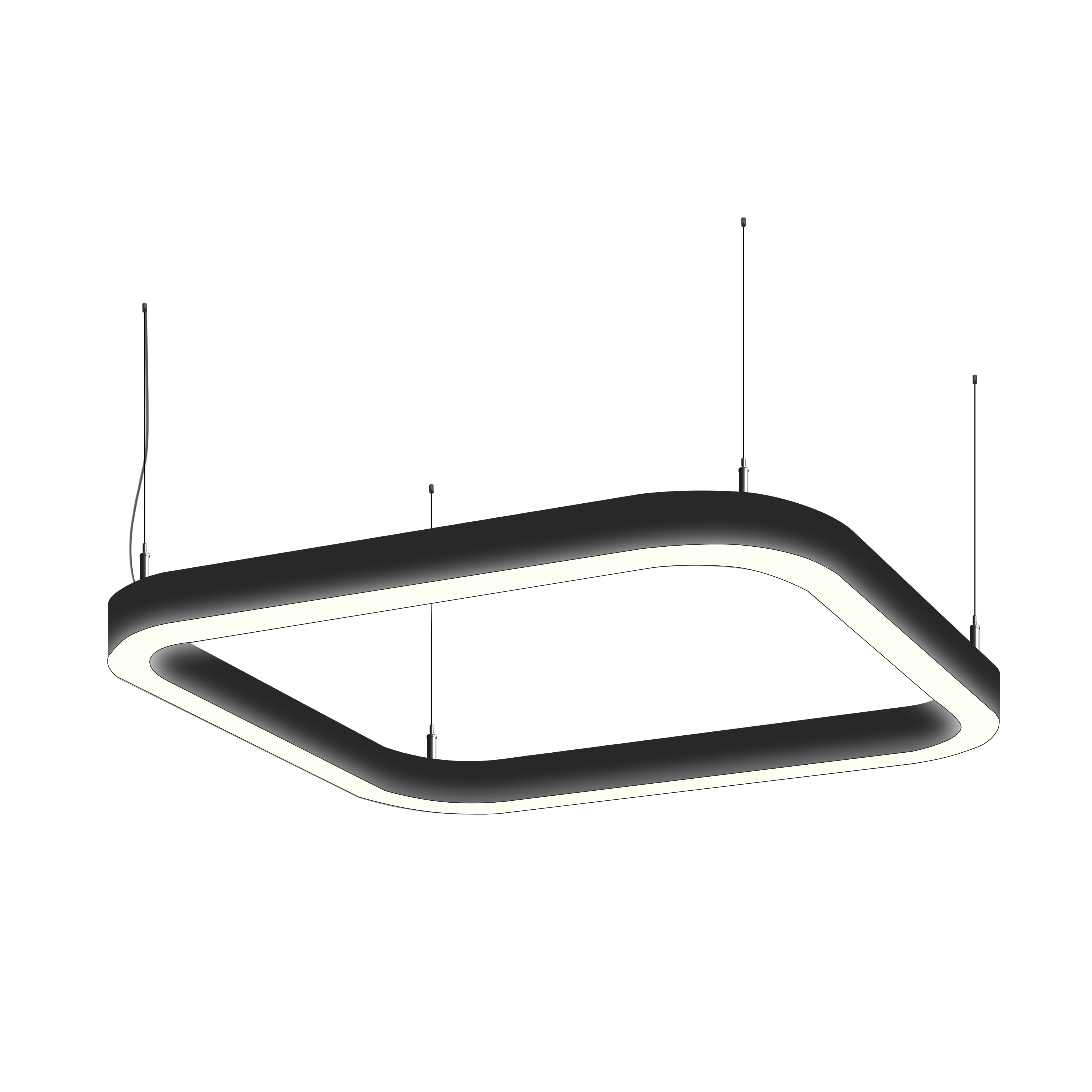 - Варианты монтажа: на тросовые подвесы (в комплекте трос 2 метра) и накладным способом.