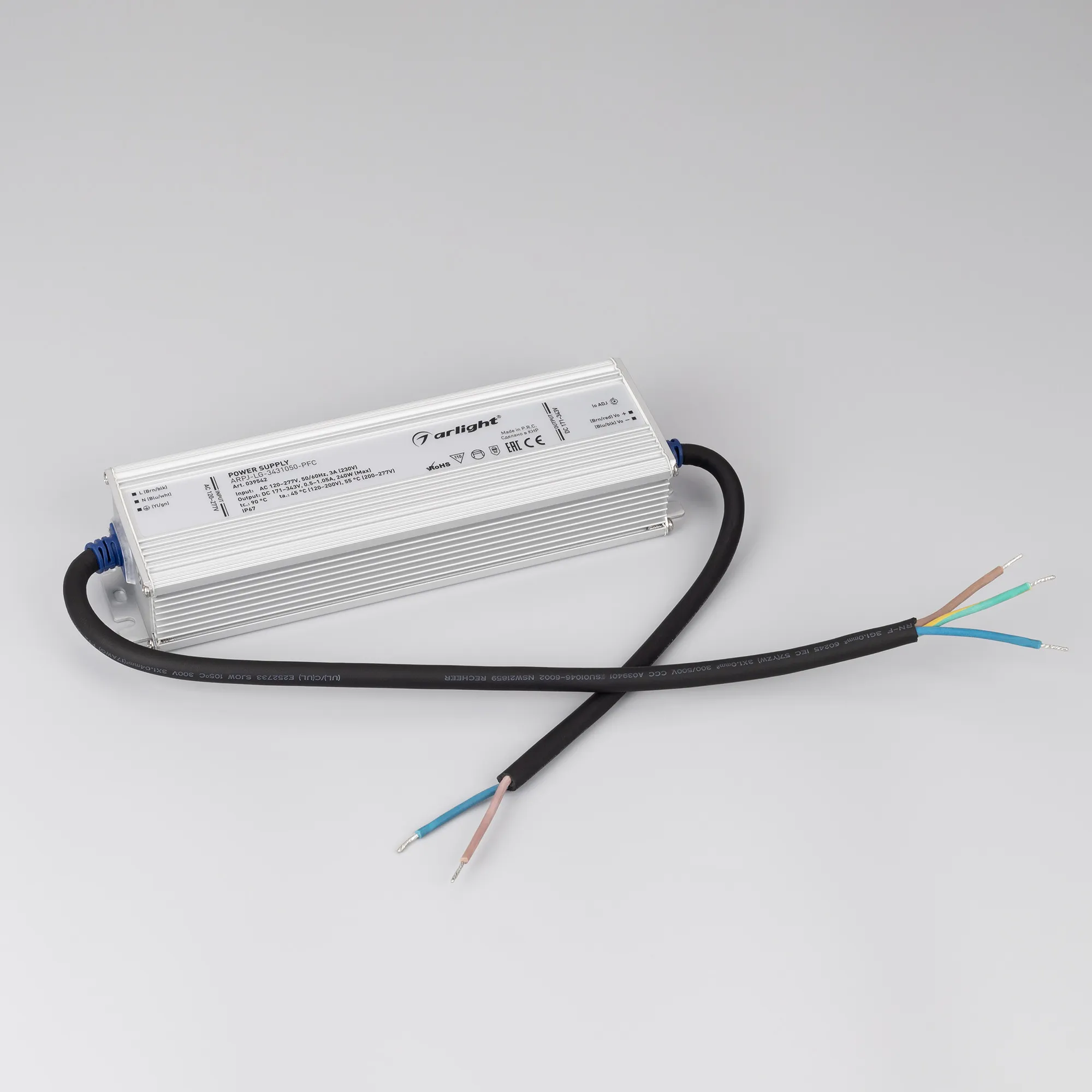 Блок питания ARPJ-LG-3431050-PFC (240W, 171-343V, 0.5-1.05A) (Arlight, IP67 Металл, 5 лет)