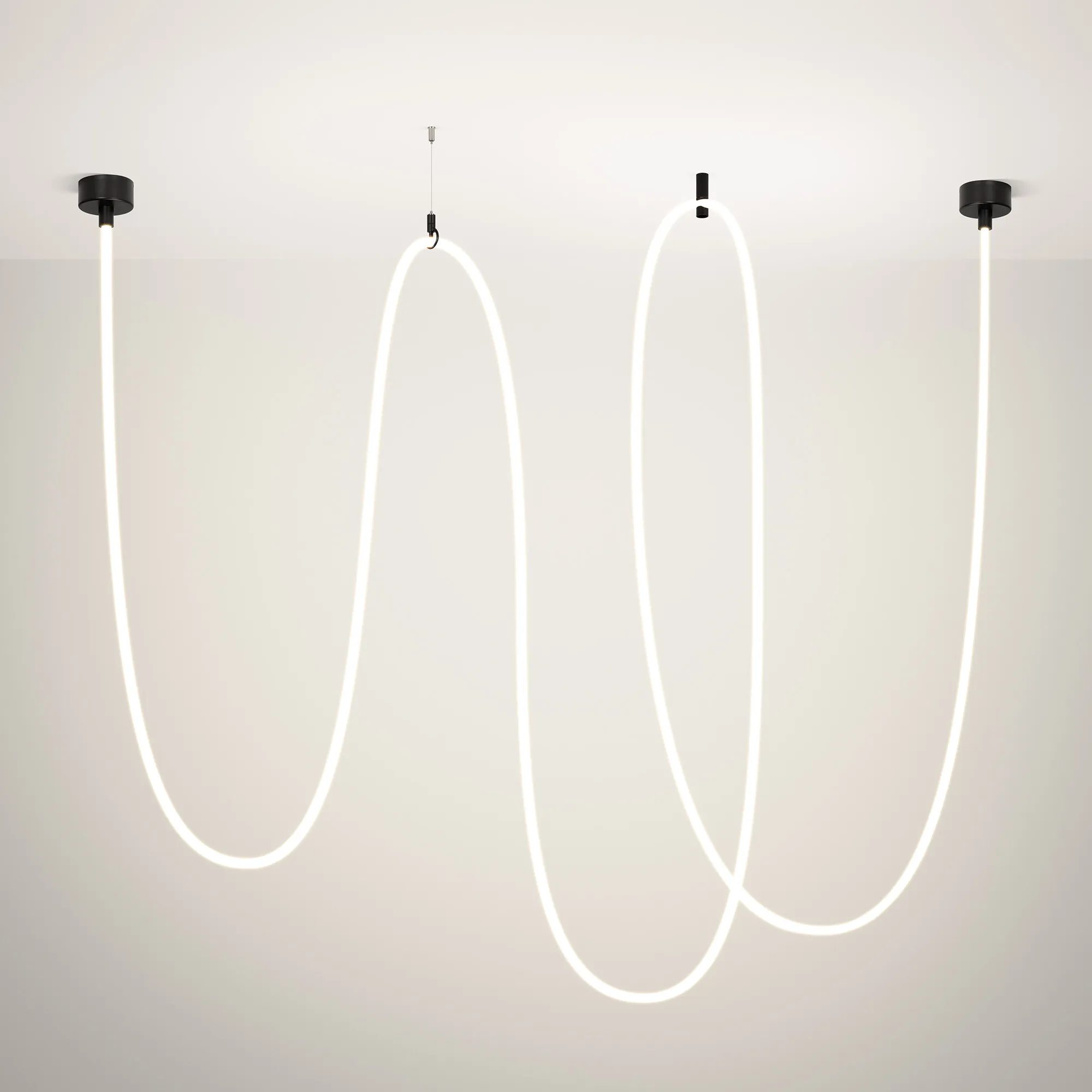 Подвесной светильник. Мощность 110 Вт, св. поток 7455 лм, 67 лм/Вт, дневной 4000 K, CRI>90, угол 360°, напряжение питания 230 В. Черный круглый корпус из стали, силиконовая герметичная лента, степень защиты IP20. Размер: общая высота чаши 85 мм, высота чаши без вывода под неон 50 мм, диаметр вывода под неон 35 мм, диаметр чаши 130 мм, диаметр силиконовой герметичной ленты 18 мм, длина силиконовой герметичной ленты 10000 мм. Монтаж накладной. Блок питания 24 В, 2500 мА, пульсация <5% (2 шт.). Аксессуары (подвес и крепление) приобретаются отдельно.