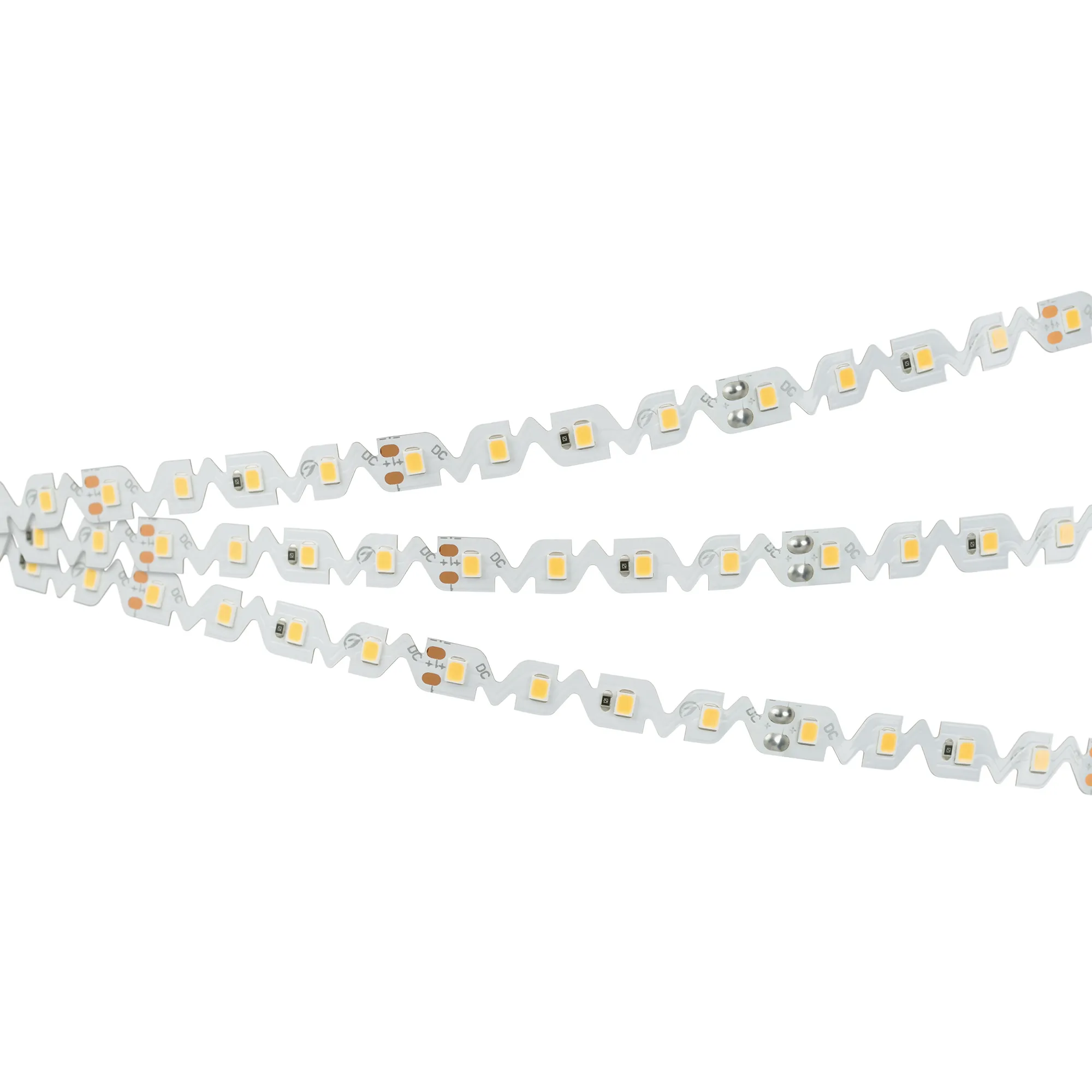 Гибкая светодиодная лента RZ серии A80 с фигурной платой в форме волны, легко изгибается на плоскости. Светодиоды SMD 2835, 80 шт/м, белая плата шириной 8 мм, скотч 3М. Цвет ТЕПЛЫЙ 3000K, индекс цветопередачи CRI>90, угол 120°. Питание 24 В, мощность 8 Вт/м (40Вт на 5 м). Размеры 5000х8х1.2 мм. Мин. отрезок 50 мм, 4 светодиода. Цена за 1 м.