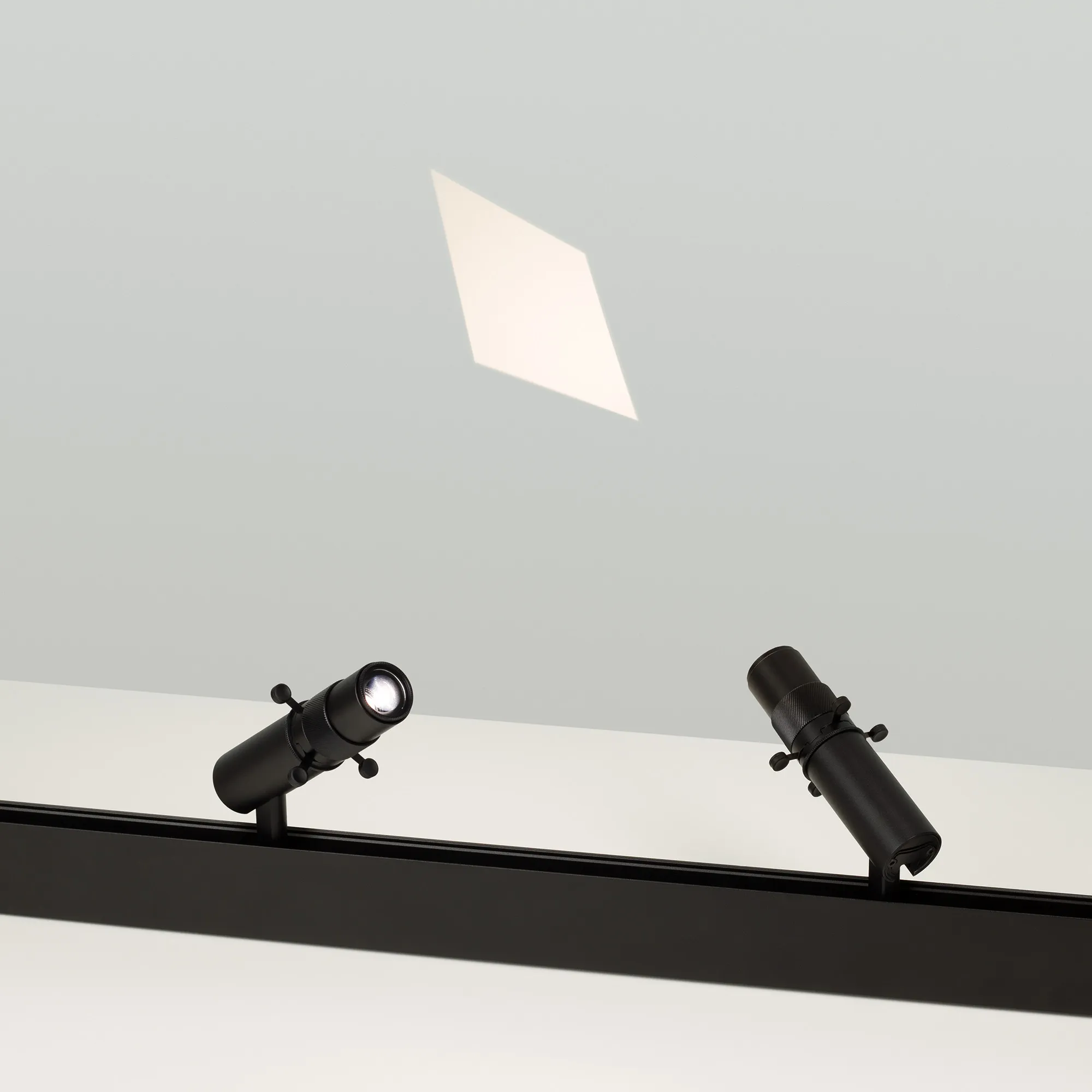Светильник с кадрируемой оптикой и изменяемым углом для магнитных треков MAG-ORIENT шириной 26 мм. Мощность 6 Вт, св. поток 60-100 лм, 17 лм/Вт, теплый 3000 K, CRI>98, угол 19-29°, напряжение питания 48 В. Черный фигурный корпус из металла, степень защиты IP20. Размеры LxWxH 126x35x195 мм. Длина светоизлучающего модуля 140мм. Монтаж на трек MAG-ORIENT. Пульсация <1%.