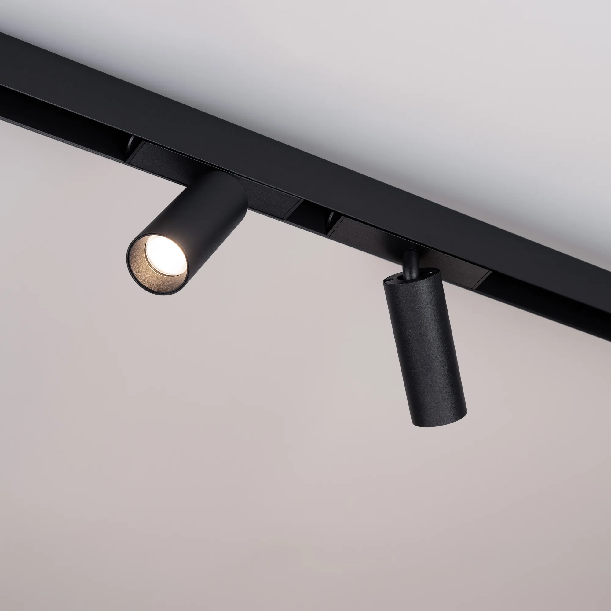 Светильник поворотный для магнитных треков шириной 25 мм с управлением DALI, мощность 9 Вт. Цвет свечения ДНЕВНОЙ 4000K, световой поток 630 лм, угол 30°, CRI>90. Корпус прямоугольный, металл, цвет черный, IP20. Размеры LxWxH 100x35x90 мм. Входное напряжение DC24V, мощность 9 Вт. Драйвер AС230V/DC24V поставляется отдельно. Диаметр светоизлучающего модуля 35 мм.