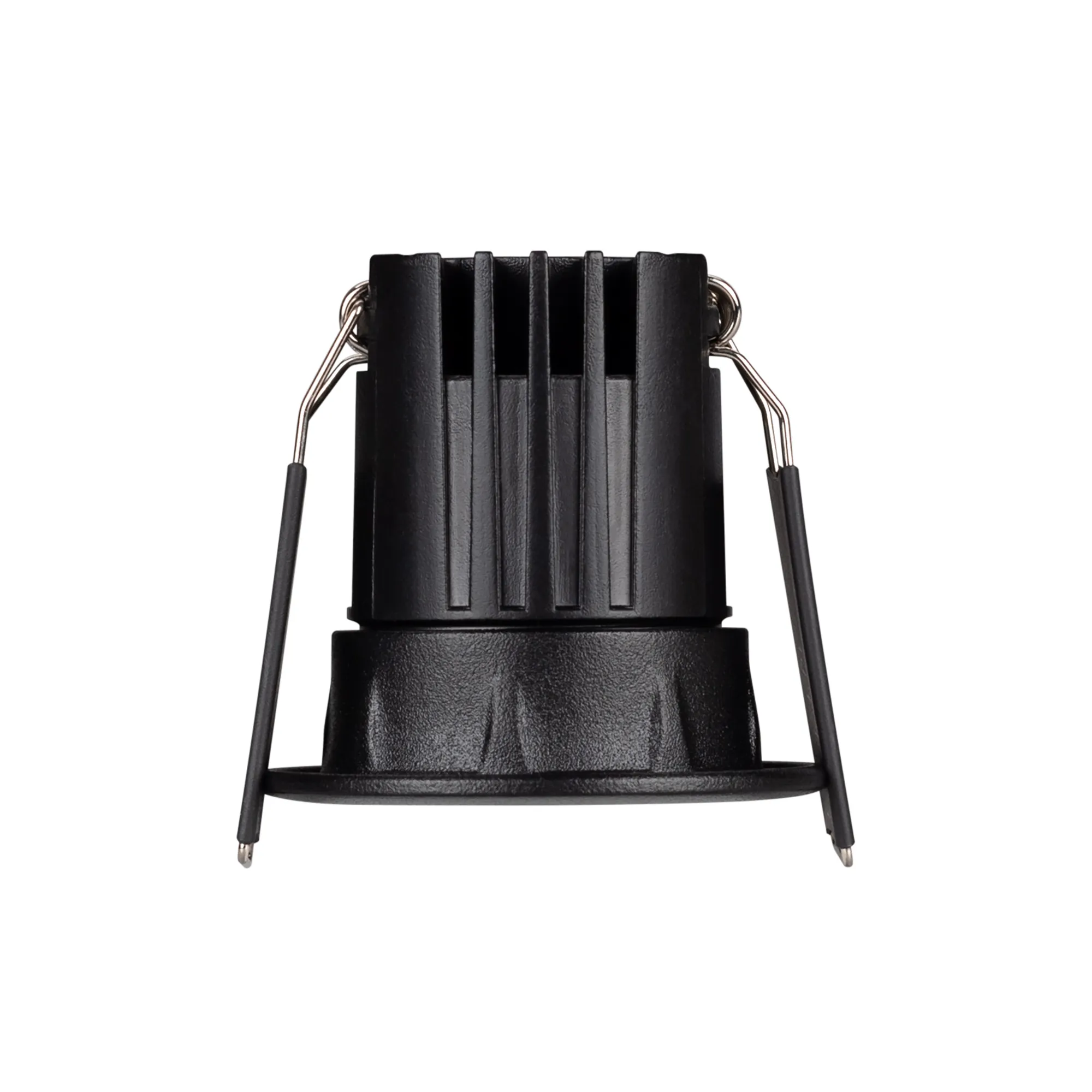 Встраиваемый светильник даунлайт. Мощность 5 Вт, св. поток 440 лм, 88 лм/Вт, дневной 4000 K, CRI>90, угол 36°, напряжение питания 230 В. Черный круглый корпус из алюминия, экран PMMA, степень защиты IP54. Размер: диаметр 45 мм, высота 43 мм. Монтаж встраиваемый, установочное отверстие: диаметр 35 мм. Драйвер IP54, 8-12 В, 400 мА, пульсация <1%.
