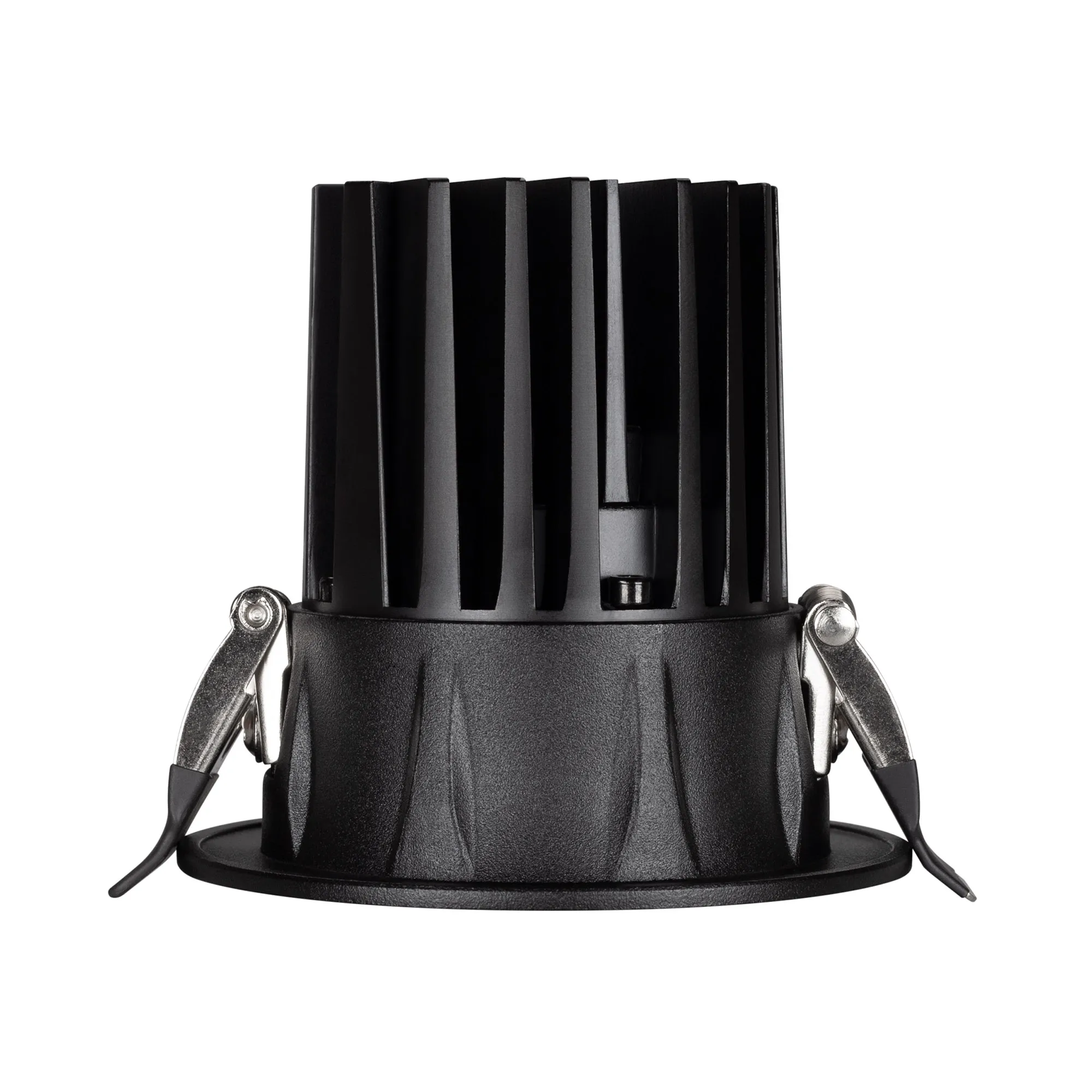 Встраиваемый светильник даунлайт. Мощность 10 Вт, св. поток 910 лм, 90 лм/Вт, дневной 4000 K, CRI>90, угол 60°, напряжение питания 230 В. Чёрный круглый корпус из алюминия, экран PMMA, степень защиты IP54. Размер: диаметр 86 мм, высота 80 мм. Монтаж встраиваемый, установочное отверстие: диаметр 80 мм. Драйвер IP54, 20-40 В, 250 мА, пульсация <1%.
