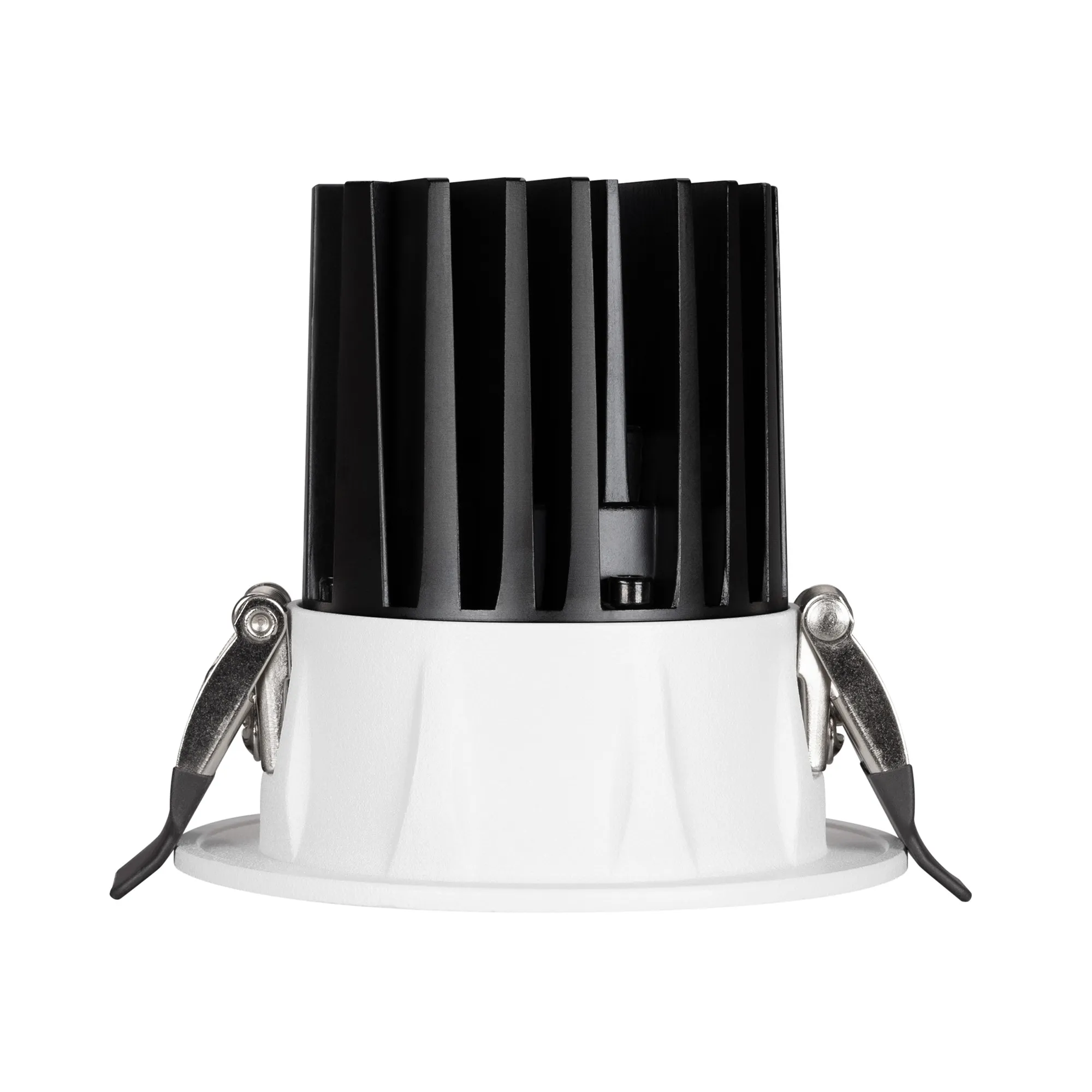 Встраиваемый светильник даунлайт. Мощность 10 Вт, св. поток 910 лм, 90 лм/Вт, дневной 4000 K, CRI>90, угол 36°, напряжение питания 230 В. Белый круглый корпус из алюминия, экран PMMA, степень защиты IP54. Размер: диаметр 86 мм, высота 80 мм. Монтаж встраиваемый, установочное отверстие: диаметр 80 мм. Драйвер IP54, 20-40 В, 250 мА, пульсация <1%.