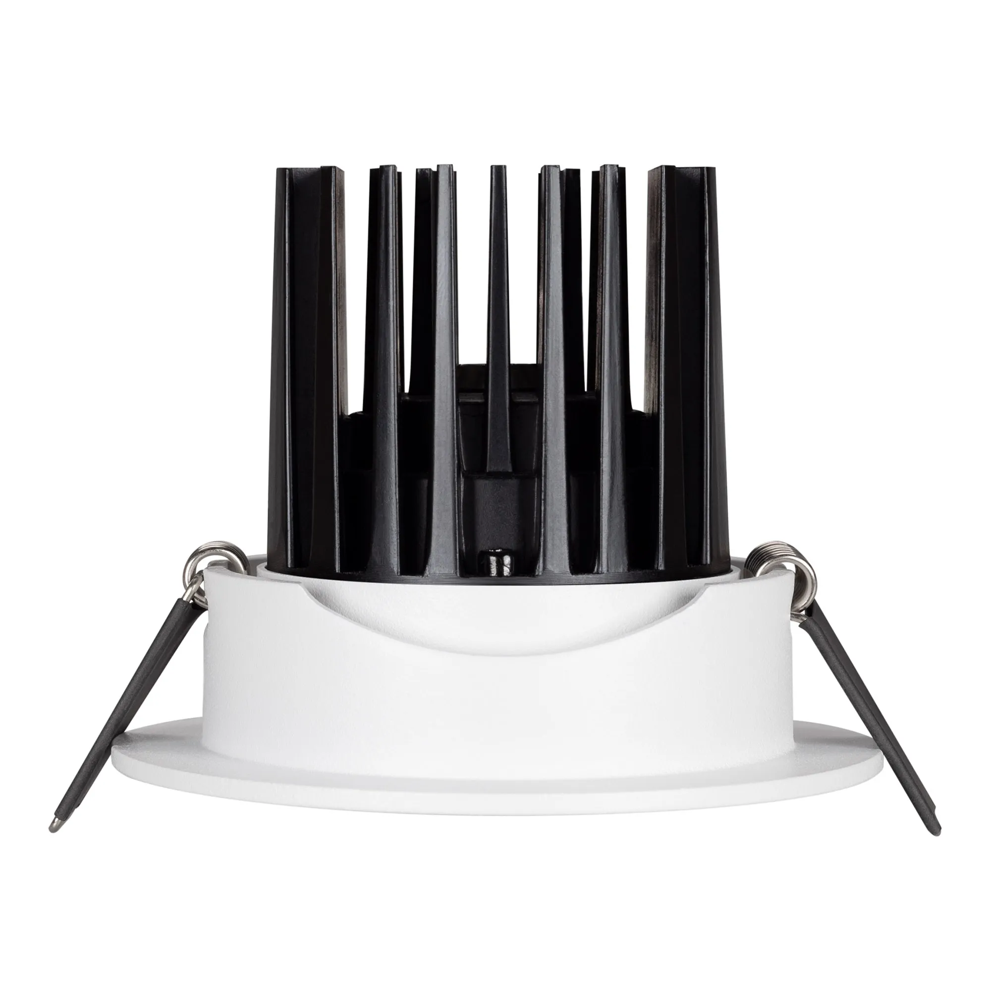 Встраиваемый поворотный светильник даунлайт. Мощность 10 Вт, св. поток 750 лм, 75 лм/Вт, теплый 3000 K, CRI>90, угол 36°, напряжение питания 230 В. Белый круглый корпус из алюминия, экран PMMA, степень защиты IP54. Размер: диаметр 94 мм, высота 75 мм. Монтаж встраиваемый, установочное отверстие: диаметр 77 мм. Драйвер IP54, 20-40 В, 250 мА, пульсация <1%.