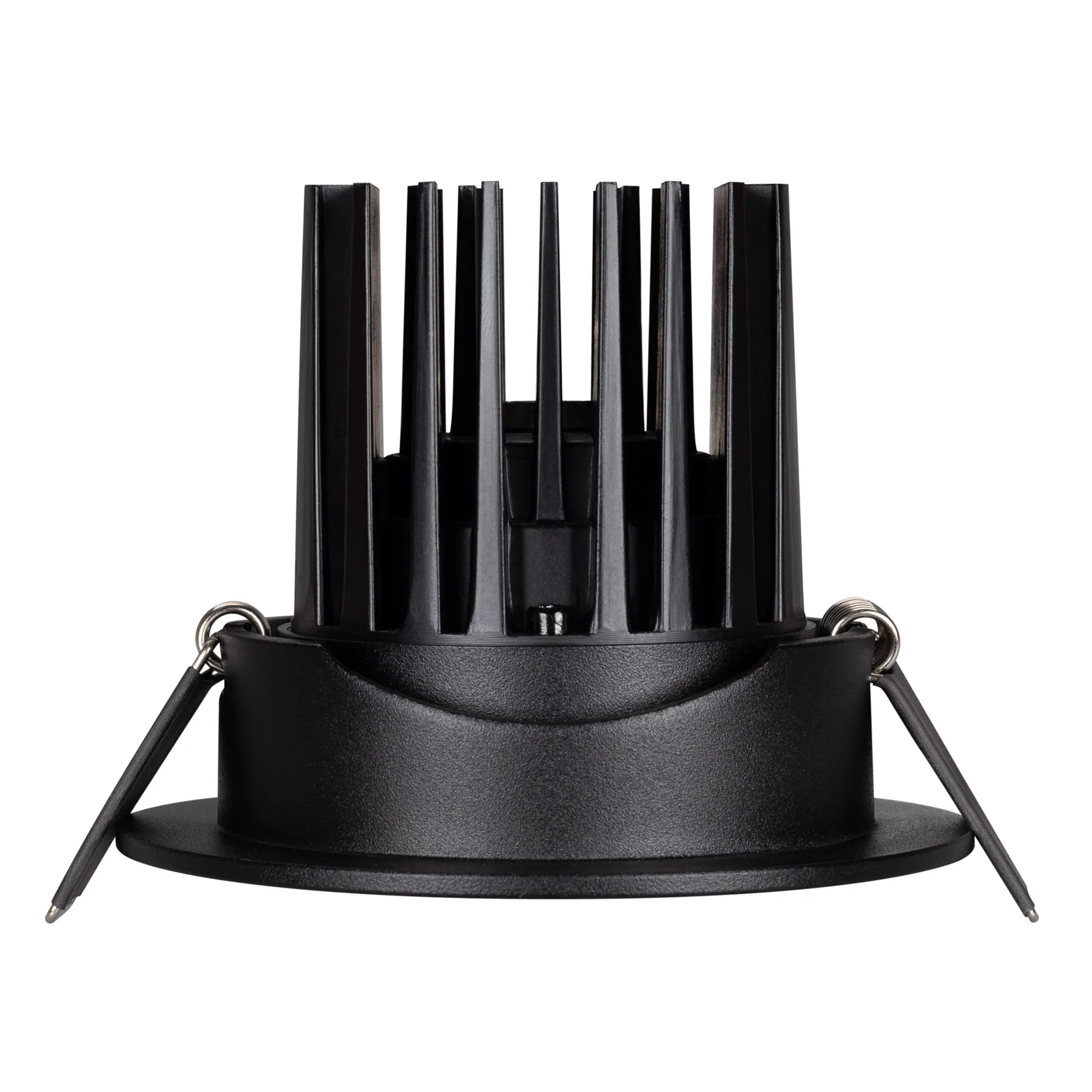 Встраиваемый поворотный светильник даунлайт. Мощность 10 Вт, св. поток 910 лм, 90 лм/Вт, дневной 4000 K, CRI>90, угол 60°, напряжение питания 230 В. Чёрный круглый корпус из алюминия, экран PMMA, степень защиты IP54. Размер: диаметр 94 мм, высота 75 мм. Монтаж встраиваемый, установочное отверстие: диаметр 77 мм. Драйвер IP54, 20-40 В, 250 мА, пульсация <1%.