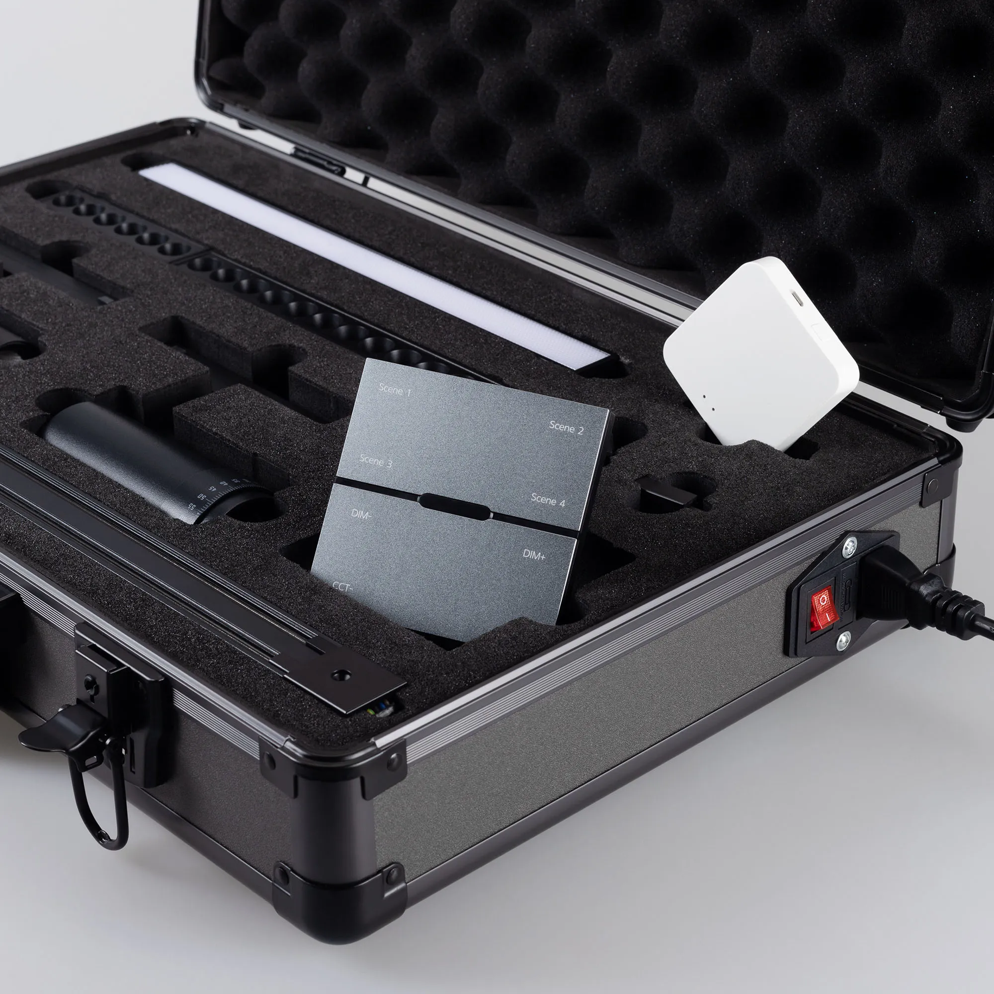 Демо-кейс для демонстрации компонентов магнитной системы MAG-VIBE с возможностью электрического подключения светильников.