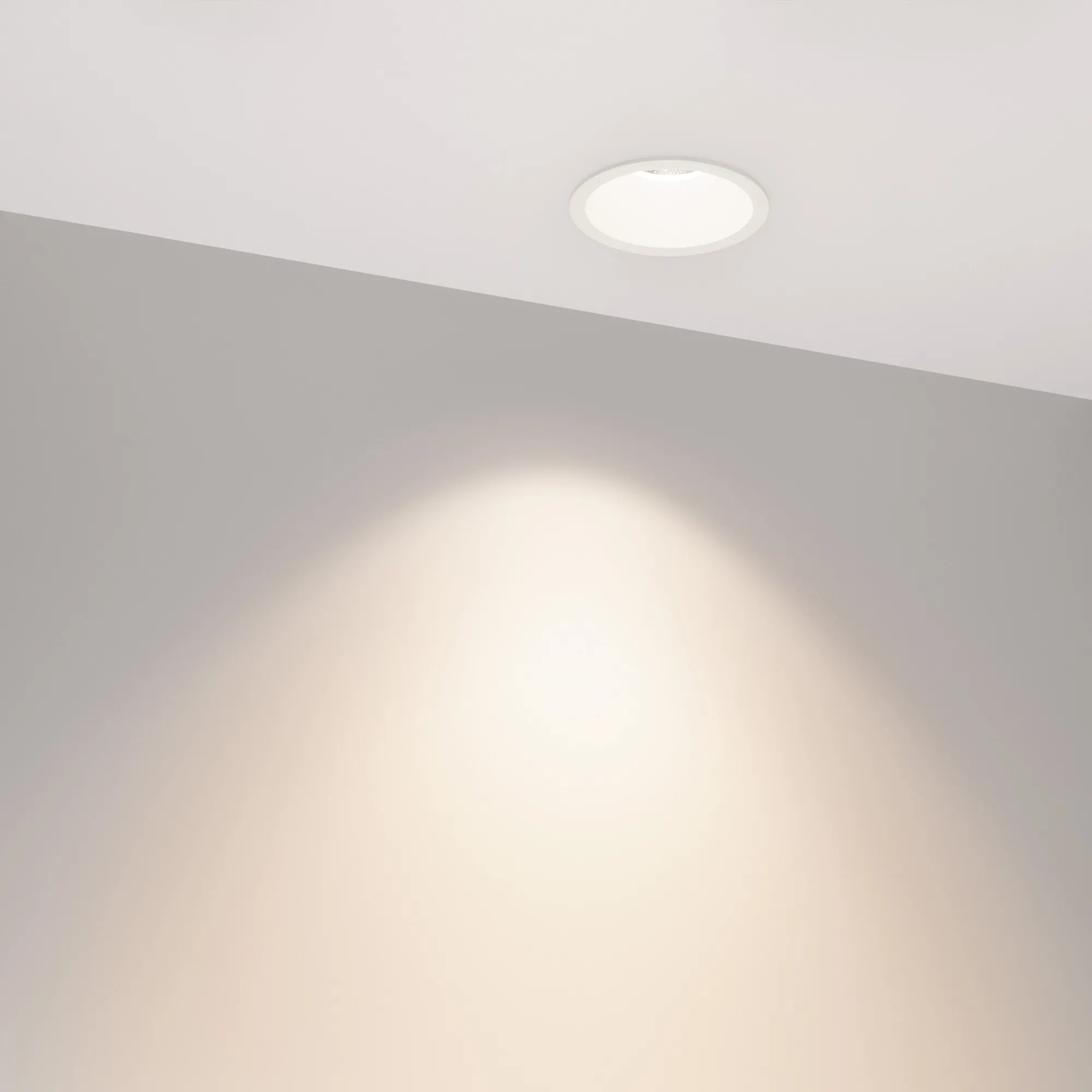 Встраиваемый светильник даунлайт. Мощность 10 Вт, св. поток 980 лм, 98 лм/Вт, дневной 4000 K, CRI>90, угол 50°, напряжение питания 230 В. Белый круглый корпус из алюминия, степень защиты IP20. Размер: диаметр 82 мм, высота 53 мм. Монтаж встраиваемый, установочное отверстие: диаметр 75 мм. UGR<14. Драйвер 30-42 В, 250 мА, пульсация <2%.