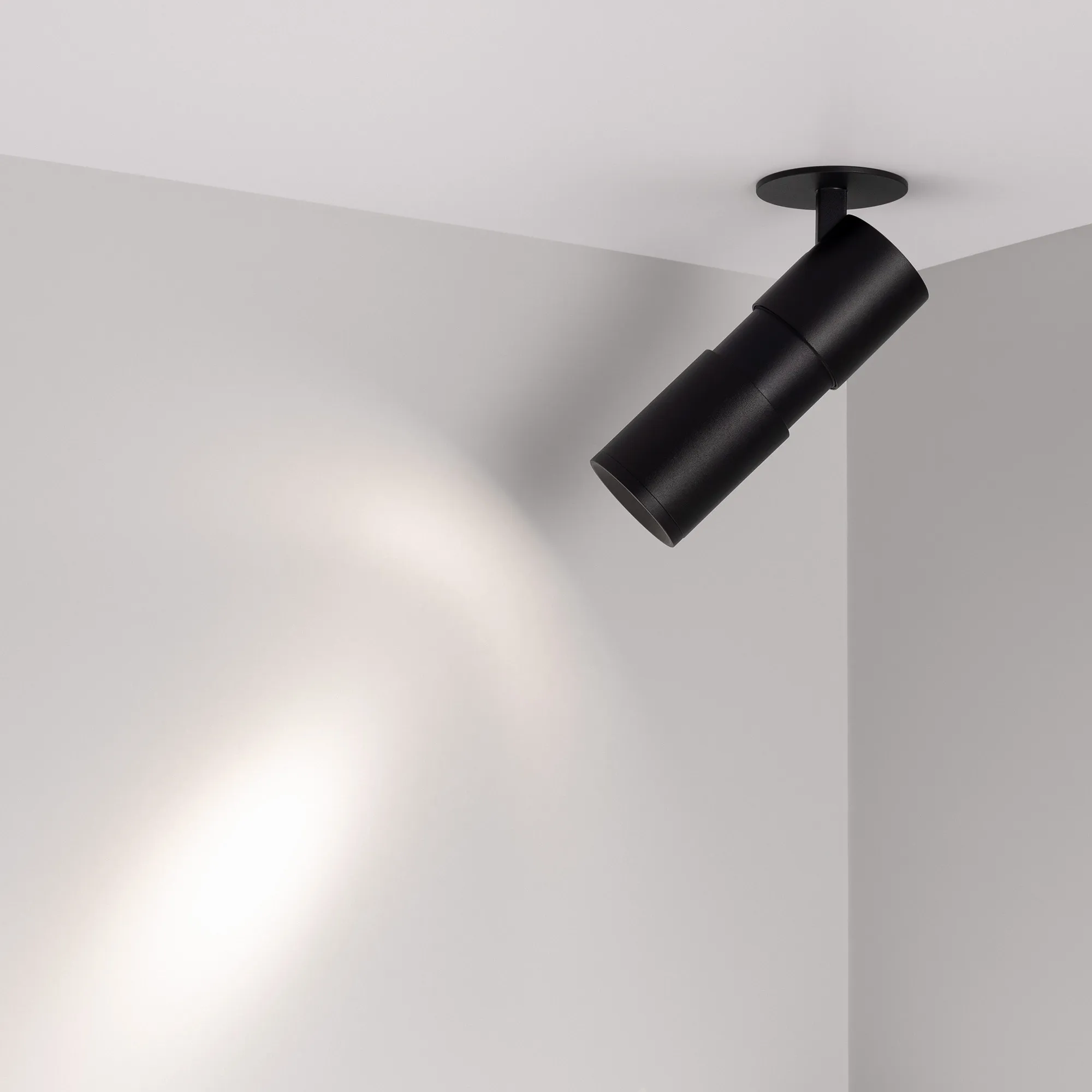 Встраиваемый поворотный откидной светильник для потолка, 12Вт. Цвет свечения дневной 4000K, световой поток 720 лм, 60 лм/Вт, регулируемый угол 8-80°, CRI>90. Корпус круглый, металл, цвет черный, IP20. Размеры DxHxL Ø55x132~163,5. Размер чаши Ø70x2 мм. Установка в отверстие Ø50 мм. Входное напряжение AC220-240V, мощность 12Вт. Драйвер в комплекте (23-60V, 300 мА). Пульсация <1%.