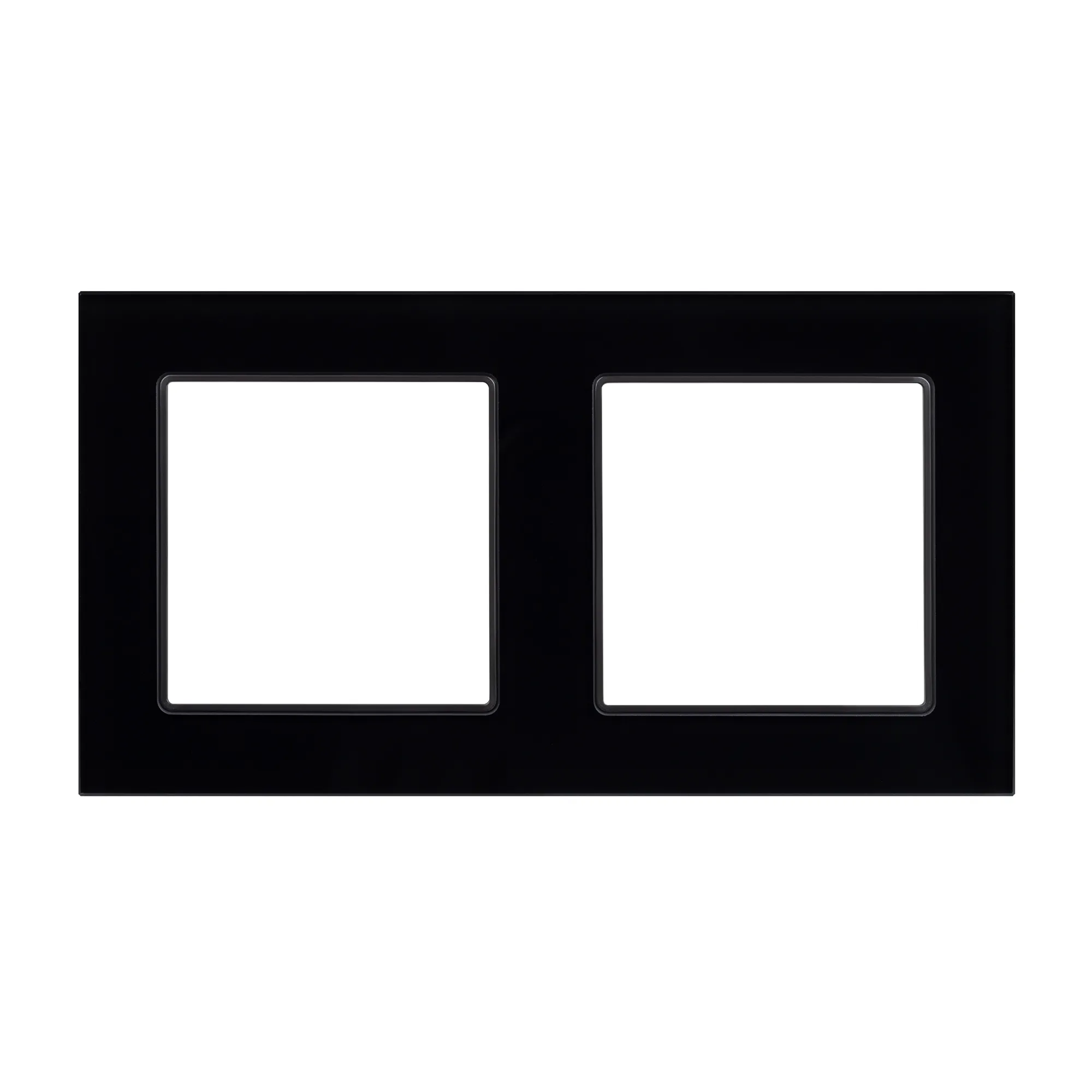 Рамка стеклянная на 2 поста, под встраиваемый механизм (квадрат). Цвет - черный. Ориентации монтажа - горизонтальная.