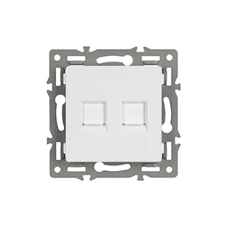 Механизм компьютерной розетки на 1 пост 2 слота 6-й категории (CAT6), с суппортом из алюминия. Цвет - белый. Степень пылевлагозащиты - IP20.