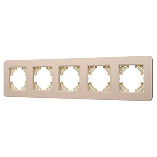 Рамка алюминиевая на 5 постов, под встраиваемый механизм. Цвет - золотой с Soft-Touch покрытием. Среднего уровня герметичности IP20. Ориентация монтажа - горизонтальная (основным ориентиром служат посадочные выступы для накладки механизма).
