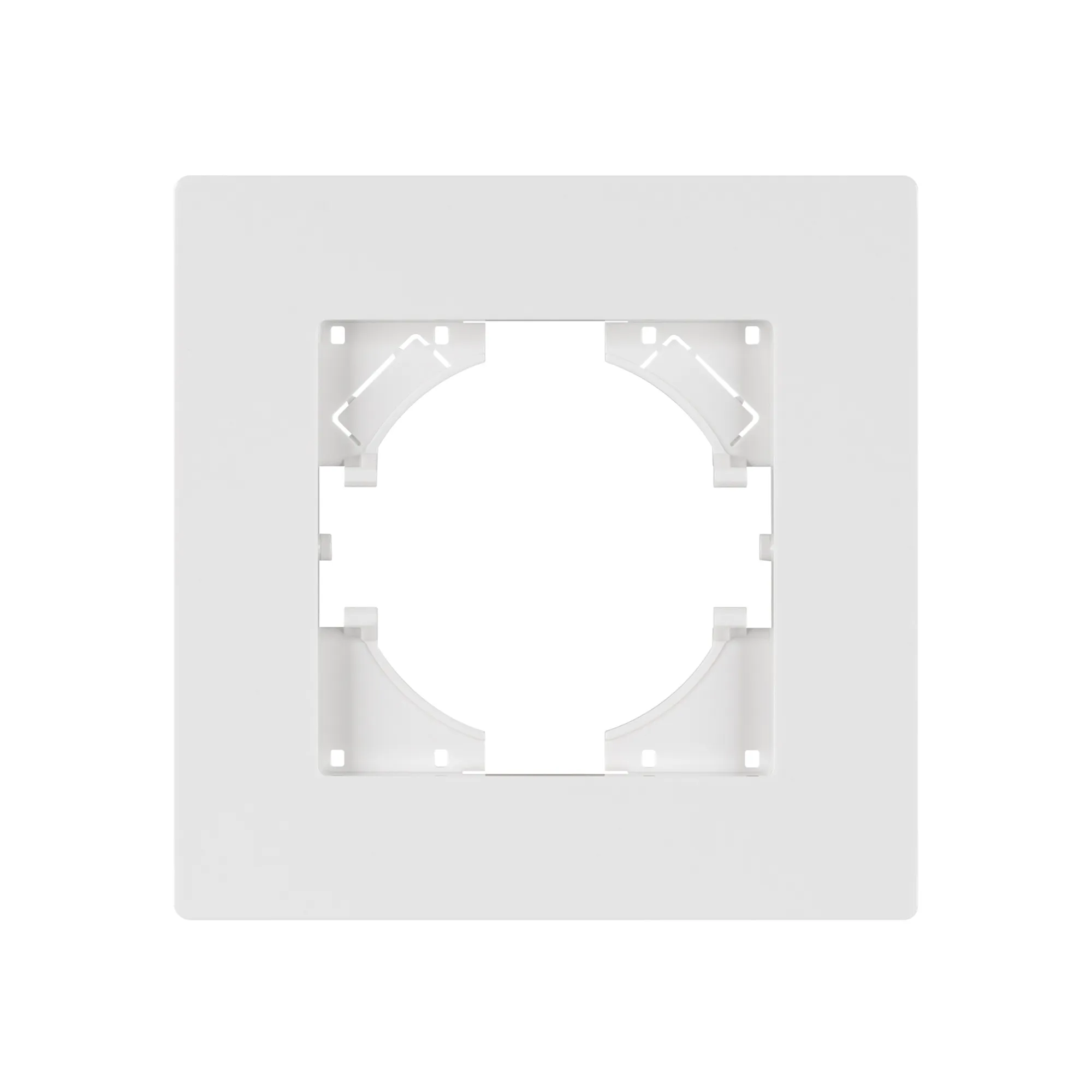 Рамка пластиковая на 1 пост, под встраиваемый механизм. Цвет - белый. Среднего уровня герметичности IP20. Ориентация монтажа - горизонтальная (основным ориентиром служат посадочные выступы для накладки механизма).
