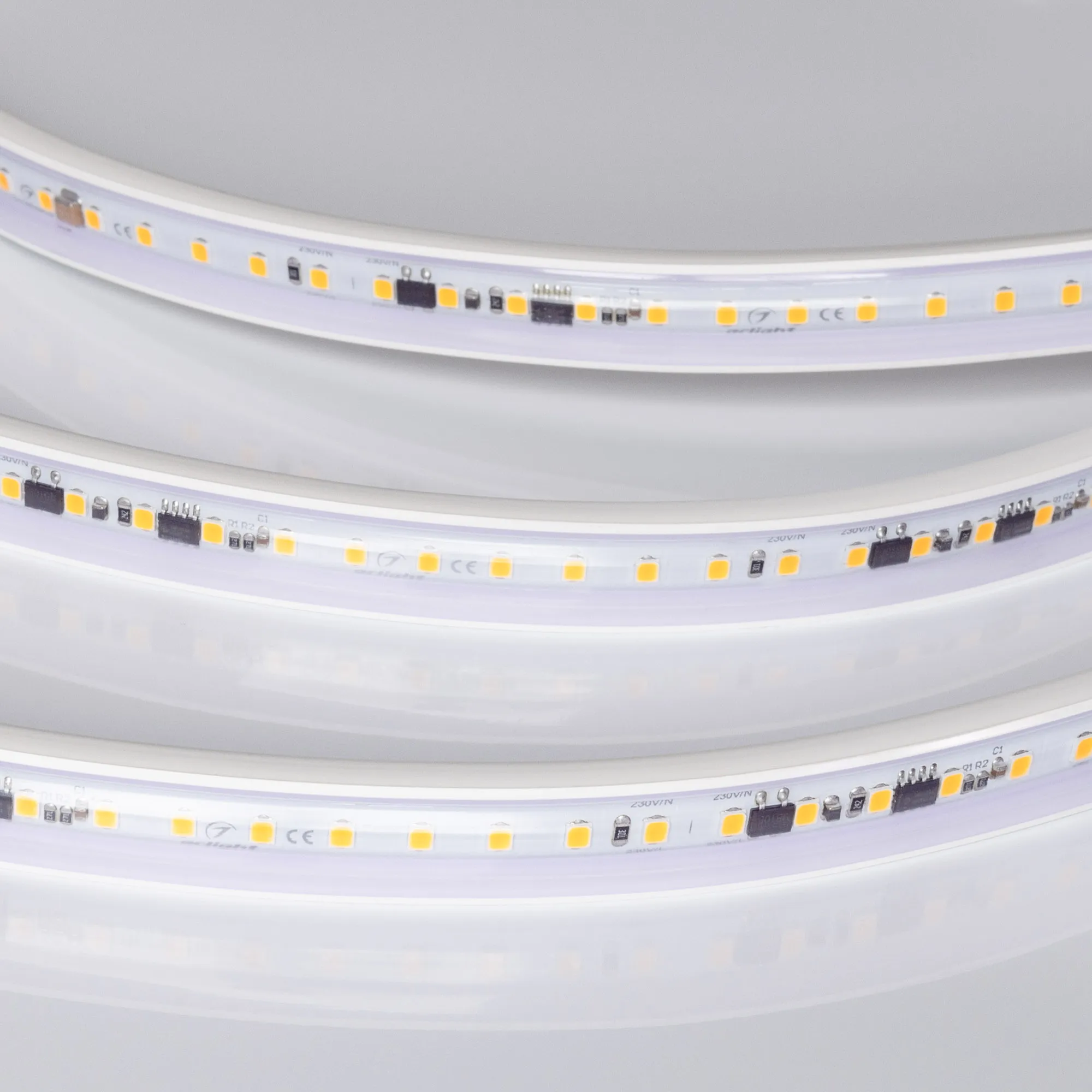 Светодиодная герметичная лента ARL серии A120, IP65 (PVC - трубка ПВХ экструзия). Светодиоды SMD 2835, 120 шт/м, белая плата шириной 12 мм, крепление на силиконовые скобы (скотч 3M отсутствует). Цвет ДНЕВНОЙ 4000K, индекс цветопередачи CRI>85, угол 120°. Питание 230 В, мощность 15 Вт/м (750 Вт на 50 м). Размеры 50000x15x6.5 мм. Мин. отрезок 100 мм, 12 светодиодов. Цена за 1 м.