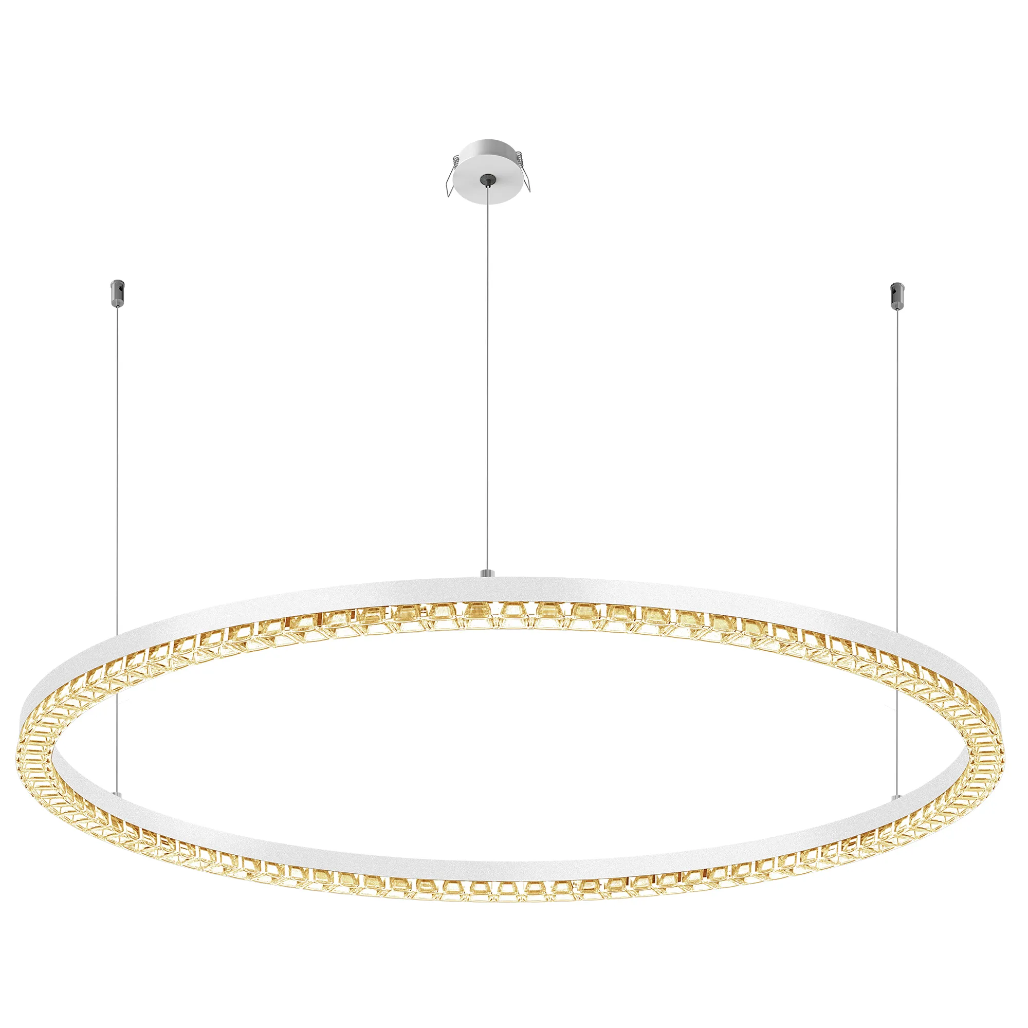 Под заказ. Подвесной светильник. Мощность 60 Вт, св. поток 5250 лм, 80-95 лм/Вт, дневной белый 4000 K, CRI>90, угол 45°, напряжение питания 230 В. Белый круглый корпус из алюминия, экран PMMA, степень защиты IP20. Размер: диаметр 1050 мм, высота 34 мм, ширина профиля 30 мм, размер чаши: диаметр 65 мм, высота 26 мм. Монтаж подвесной, длина подвеса 1200 мм, тип чаши встраиваемый, диаметр установочного отверстия чаши 60 мм. Драйвер (2 шт.) 9-42 В, 700 мА. Пульсация <0,3 %.