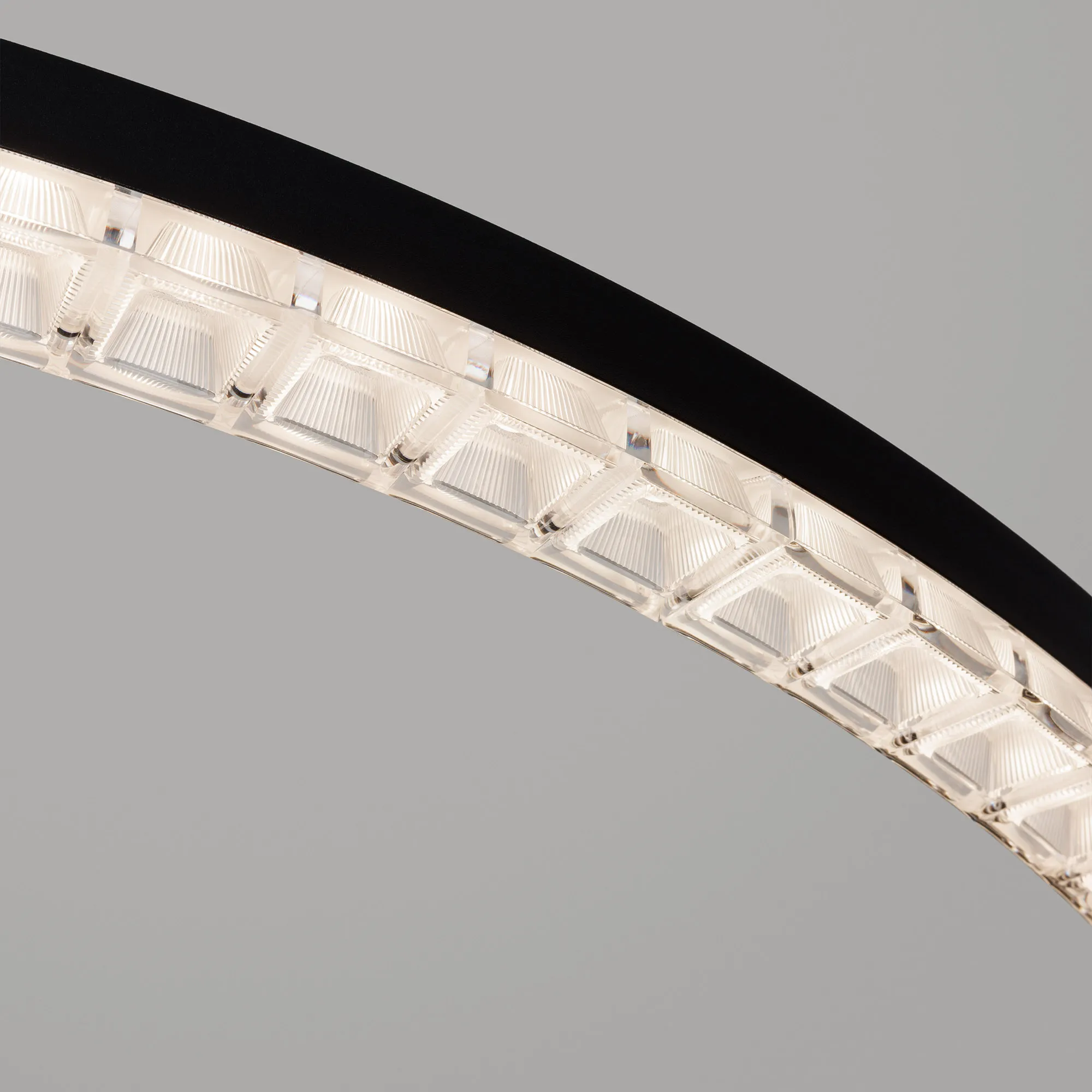 Подвесной светильник. Мощность 40 Вт, св. поток 3460 лм, 80-95 лм/Вт, дневной белый 4000K, CRI>90, угол 45°, напряжение питания 230 В. Черный круглый корпус из алюминия, экран PMMA, степень защиты IP20. Размер: диаметр 850 мм, высота 34мм, ширина профиля 30 мм, размер чаши: диаметр 65 мм, высота 26 мм. Монтаж подвесной, длина подвеса 1200 мм, тип чаши встраиваемый, диаметр установочного отверстия чаши 60 мм. Драйвер 27-38 В, 1050мА. Пульсация <0,3 %.