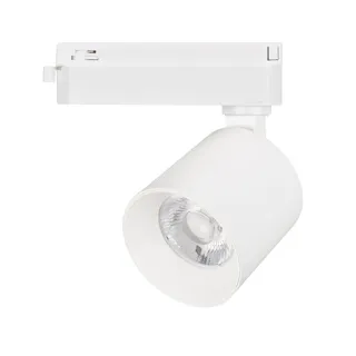 Светильник для однофазных треков, 8 Вт. Цвет свечения ТЁПЛЫЙ 3000K, световой поток 800 лм, угол 20°, CRI>90. Корпус круглый, металл, цвет белый, IP20. Размеры Ø60x59,7 мм. Монтаж на трек 1-фазный. Входное напряжение AC220-240V, мощность 10 Вт. Драйвер встроенный (25-40V, 250 mA).Пульсация <1%.