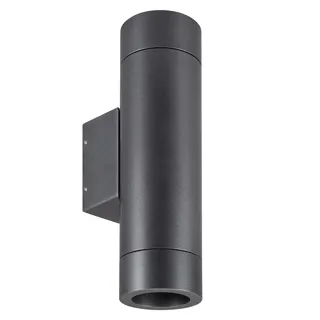 Накладной настенный светильник, свечение вверх/вниз. Мощность 24 Вт, св. поток 740 лм, 31 лм/Вт, теплый 3000 K, CRI>80, угол 2x6°, напряжение питания 230 В. Темно-серый фигурный корпус из алюминия, экран стекло, степень защиты IP65. Размер: длина 98 мм, ширина 65 мм, высота 220 мм. Монтаж накладной. Драйвер встроенный, пульсация <1%.