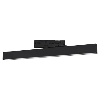 Светильник для треков/шин 4 провода с управлением DALI. Мощность 25 Вт, св. поток 2078 лм, 83 лм/Вт, теплый 3000 K, CRI>90, угол 100°, напряжение питания 230 В. Черный корпус из алюминия, материал рассеивателя PC, степень защиты IP20. Размер: длина 605 мм, ширина 34 мм, высота 50 мм. Драйвер 10-42В (300-800 мА), 50/60Гц, максимальная мощность 42W. Монтаж на трек 3-фазный.