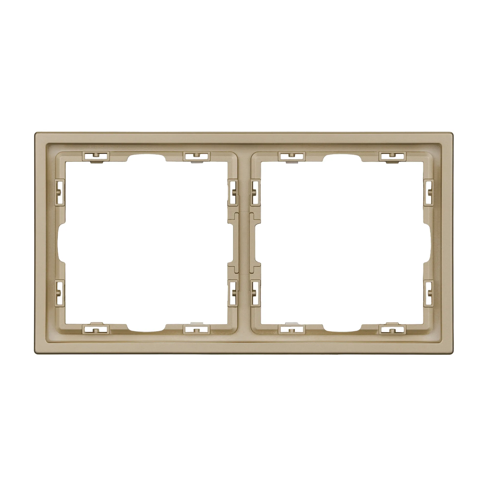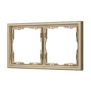Рамка пластиковая на 2 поста, под встраиваемый механизм. Цвет - золотой, с Soft-Touch покрытием. Среднего уровня герметичности IP20. Ориентация монтажа горизонтальная.