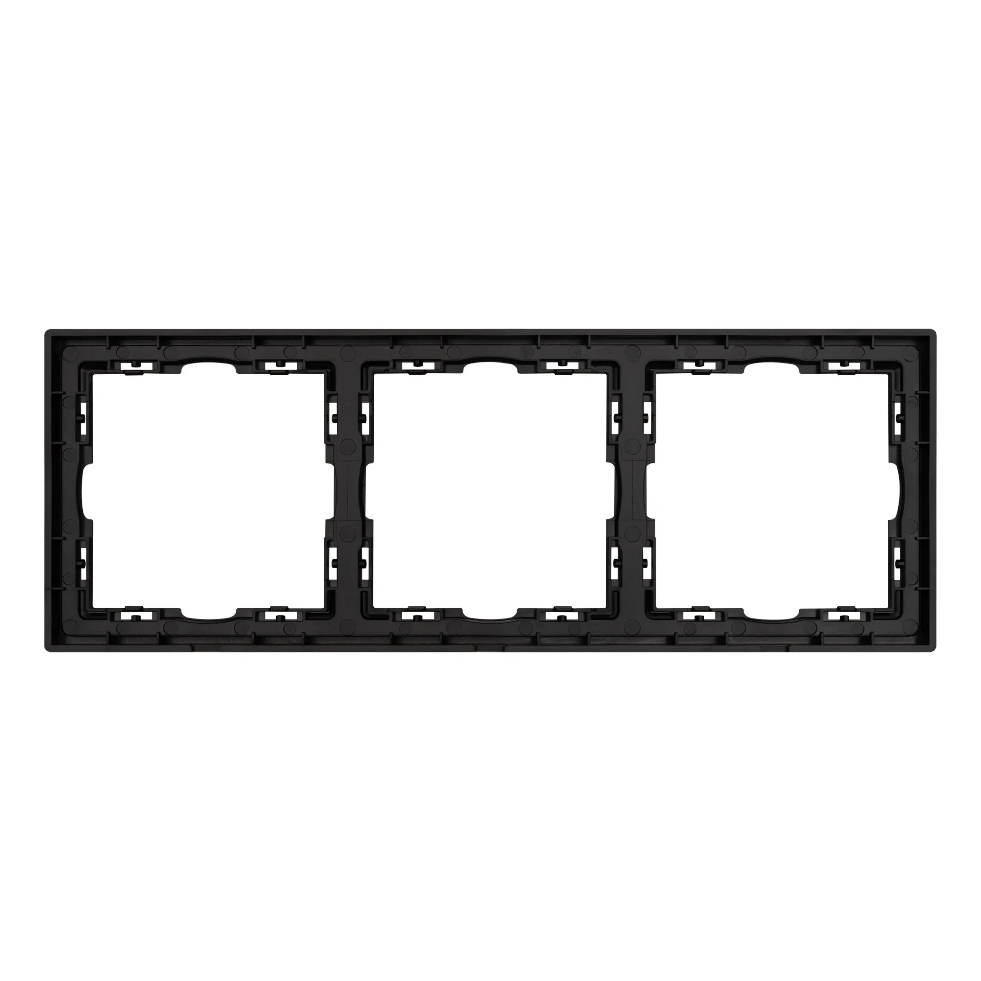 Рамка пластиковая на 3 поста, под встраиваемый механизм. Цвет - серый, с Soft-Touch покрытием. Среднего уровня герметичности IP20. Ориентация монтажа горизонтальная.