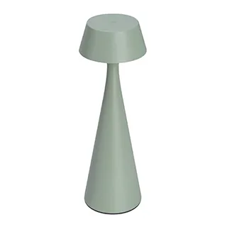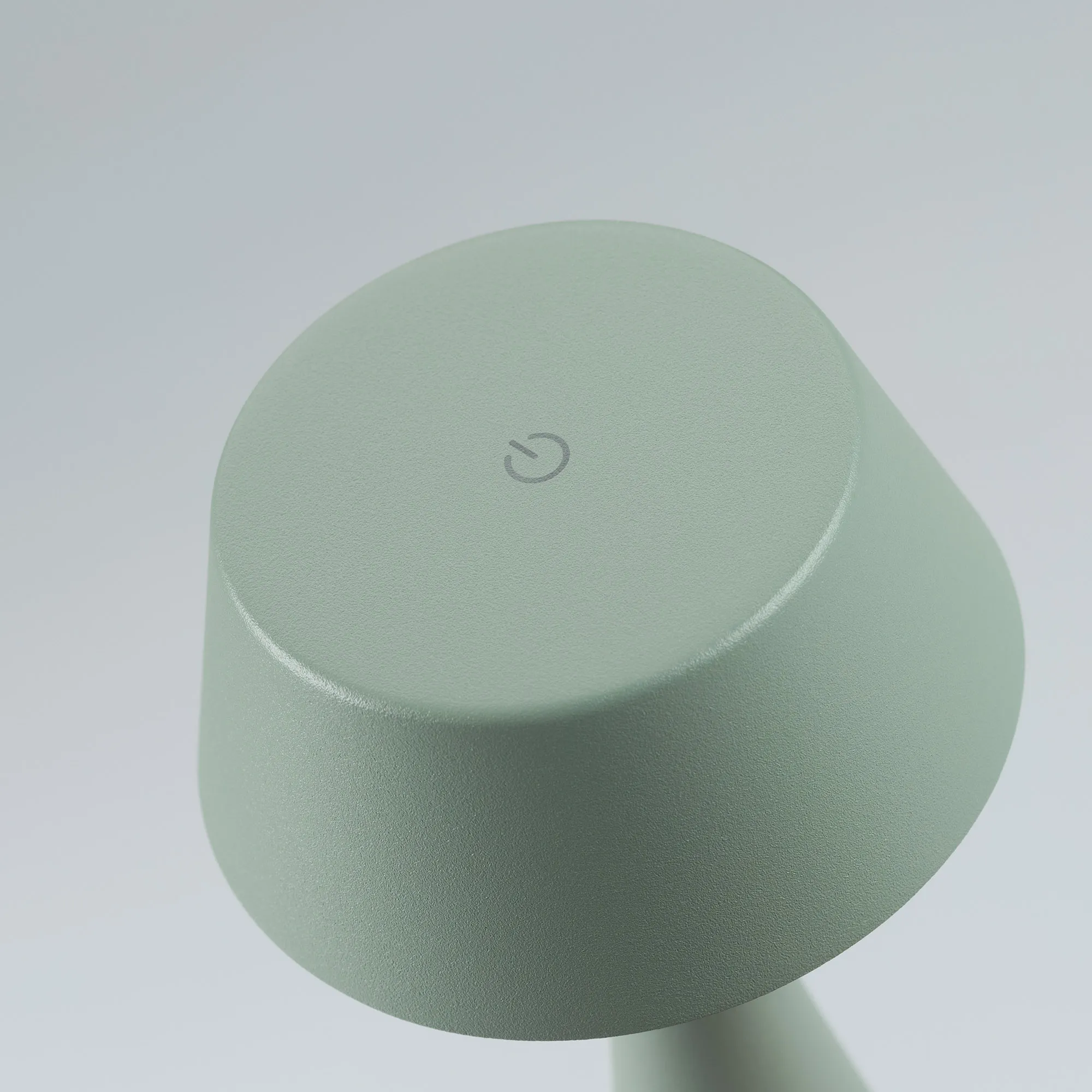 Настольный светильник со встроенным аккумулятором, 2Вт, алюминиевый корпус, цвет зеленый. Цвет ТЕПЛЫЙ БЕЛЫЙ 2200-2700-3000K, св.поток 110-130 лм, CRI(Ra)>80, угол 154°. Размер Ф80x242мм. IP54. Зарядка от сети переменного тока AC220-240V. Тип встроенного аккумулятора 2x2200мАч Li-ion, напряжение батареи 5V