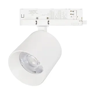 Светильник для трехфазных треков, 36 Вт с управлением TRIAC. Цвет свечения ДНЕВНОЙ 4000K, световой поток 3420 лм, угол 20°, CRI>90. Корпус круглый, металл, цвет белый, IP20. Размеры Ø100x93 мм. Входное напряжение AC220-240V. Драйвер встроенный 9-40В (300 - 1050мА), 50/60Гц, максимальная мощность 42 Вт.