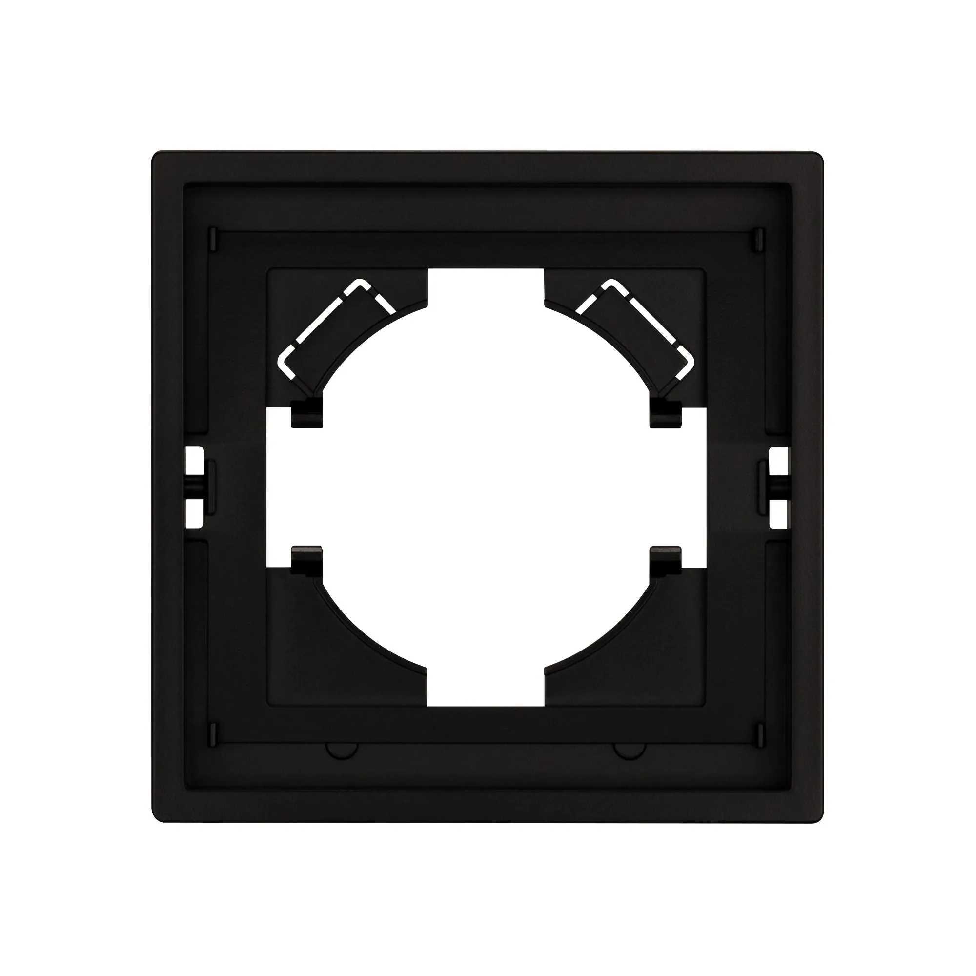 Рамка пластиковая на 1 пост, под встраиваемый механизм. Цвет - черный. Среднего уровня герметичности IP20. Ориентация монтажа горизонтальная. Габаритные размеры: длина 80 мм, ширина 80 мм, высота 9 мм. Гарантийный срок 12 мес.